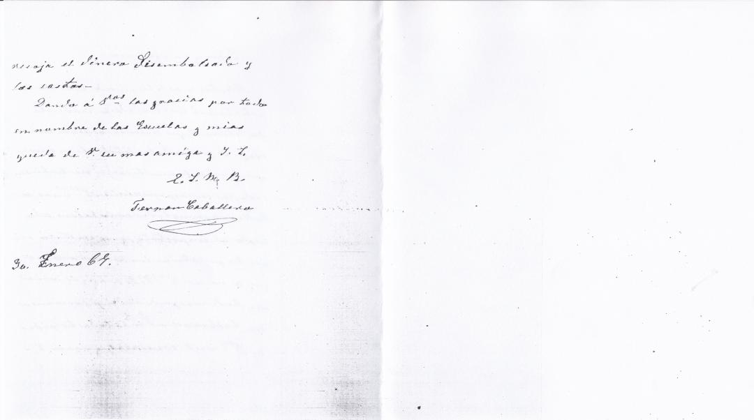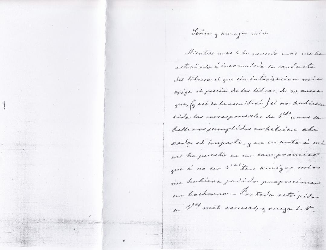 Carta de Fernán Caballero a un amigo expesando sus disculpas por el precio que el librero puso a los libros