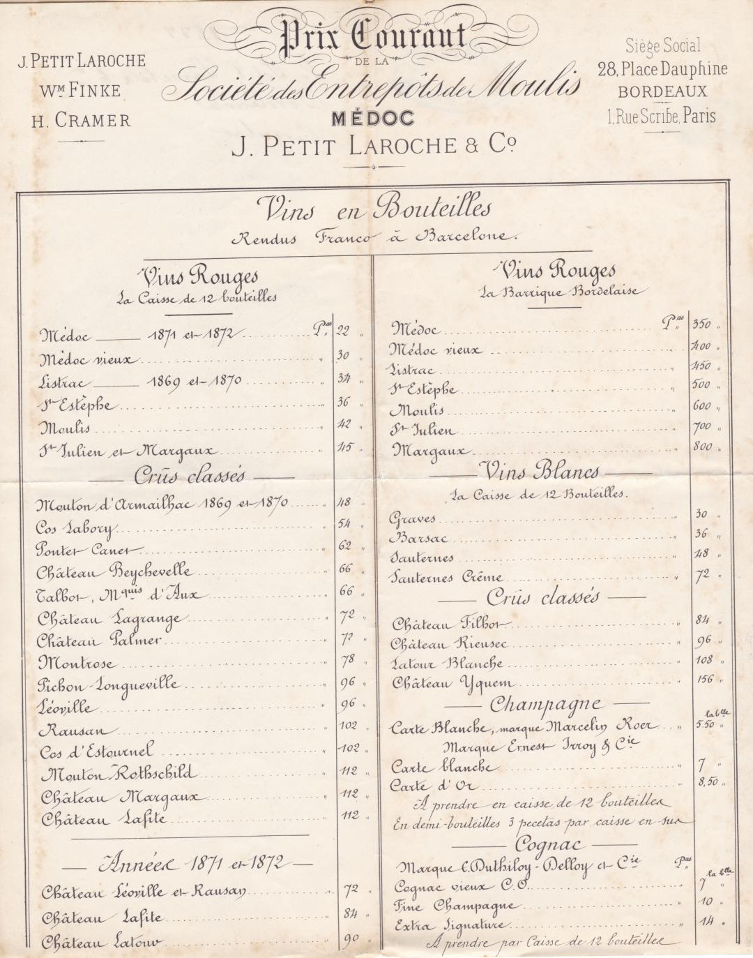 Prix Courant de la Societé des Entrepots de Moulins