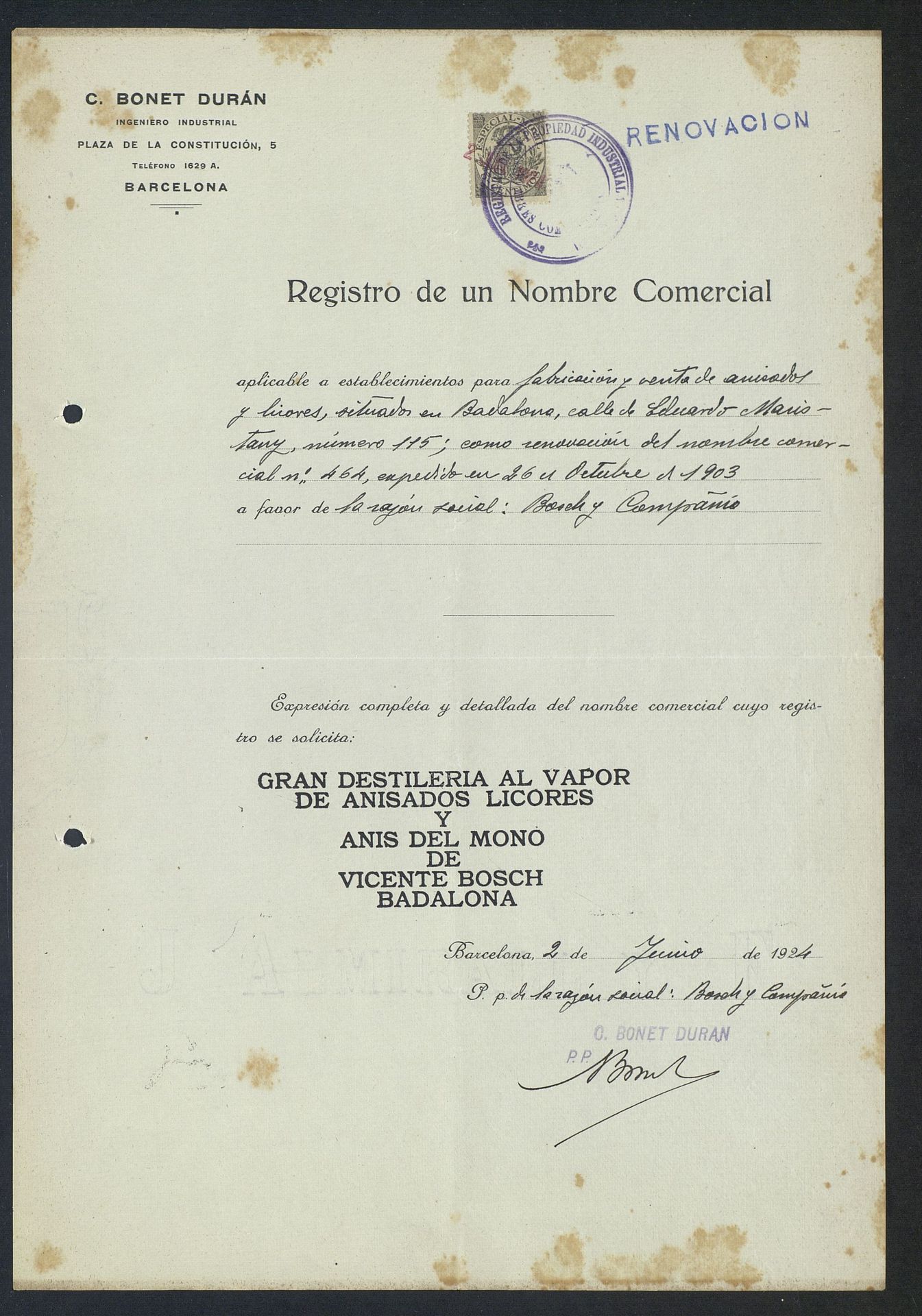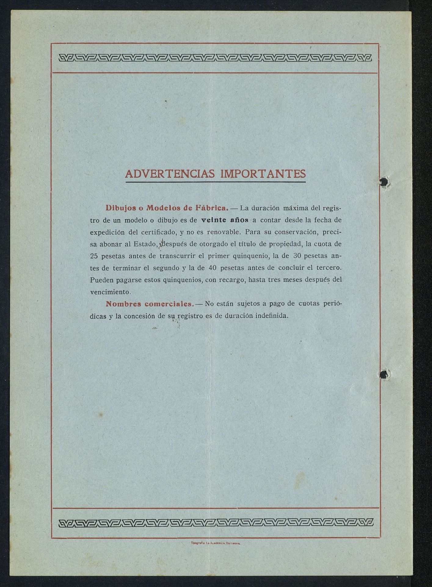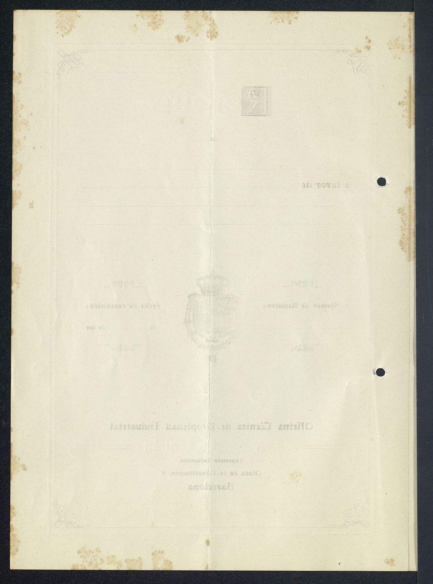 Certificado de registro de la propiedad industrial número 464. Fecha expedición 1924