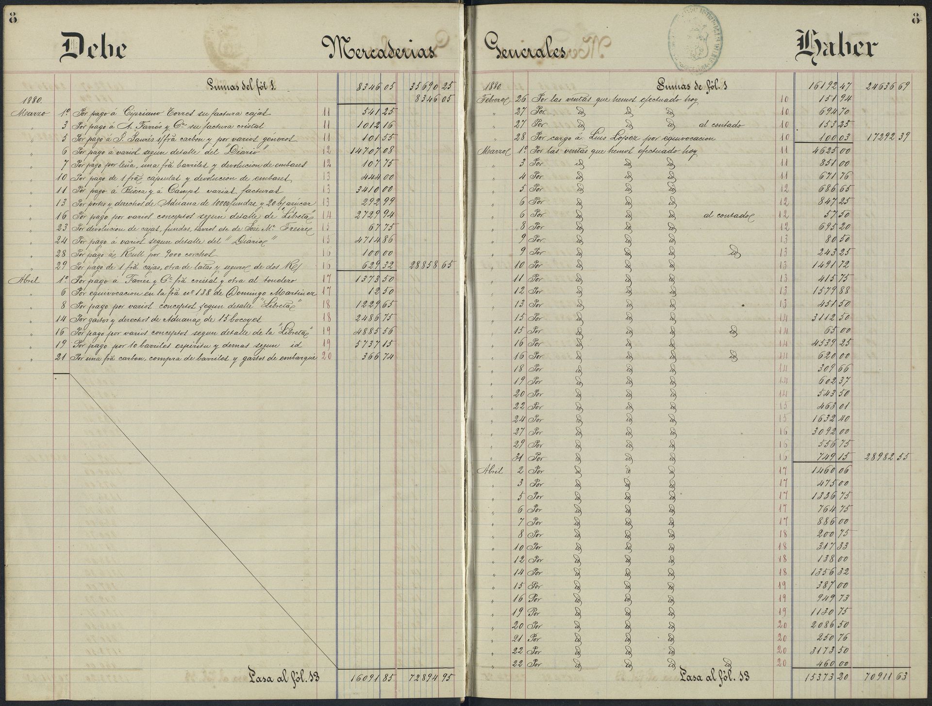 Apuntes de compras de cristal a A. Farrés y Cía y de corchos Rull