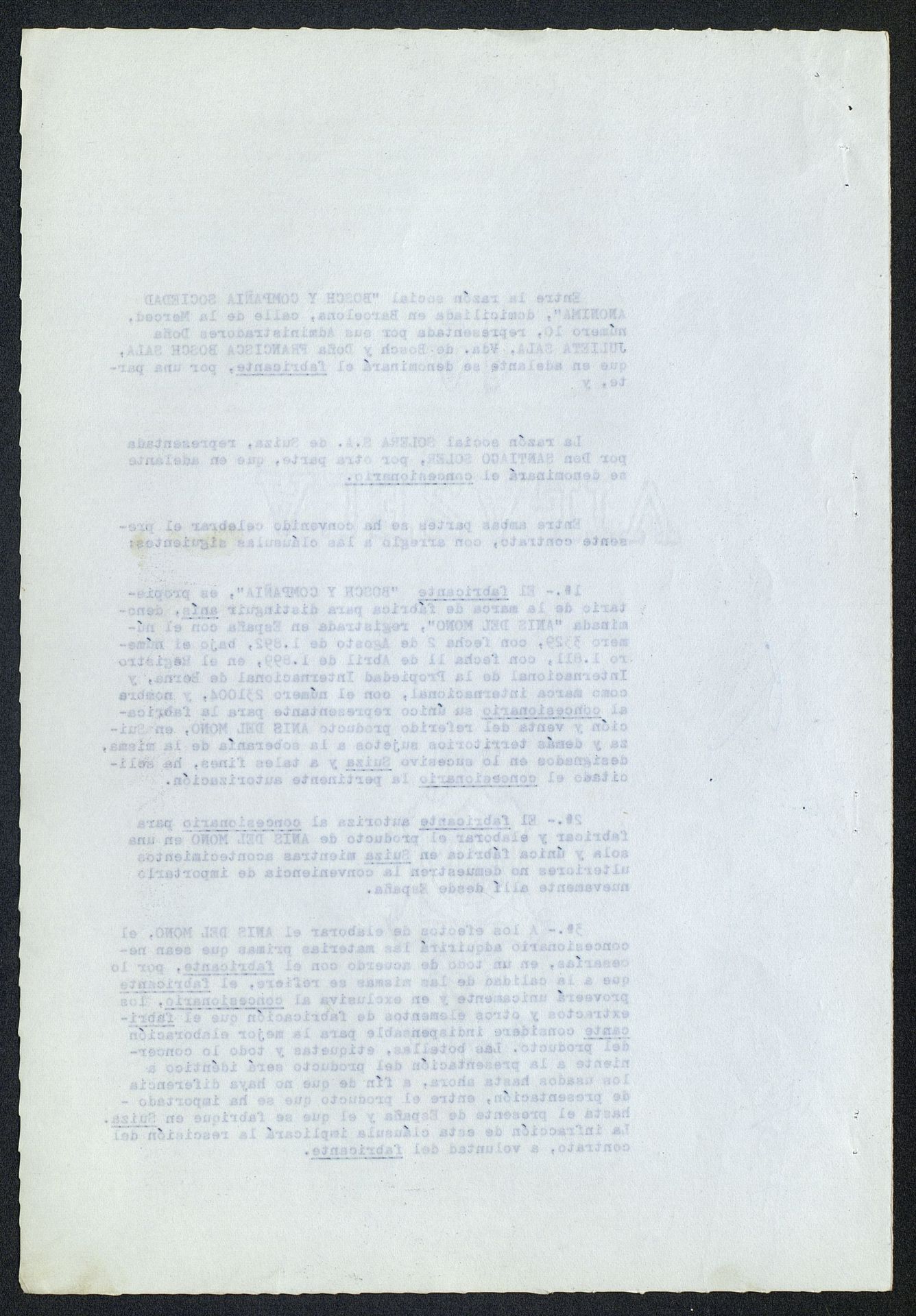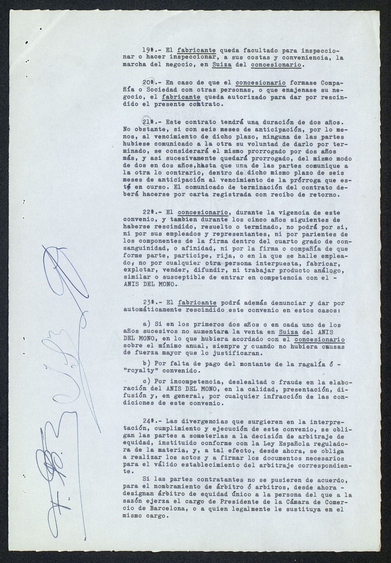 Contrato para la fabricación y venta de Anís del Mono en Suiza entre Bosch y Cía SA y Solera, S.A.