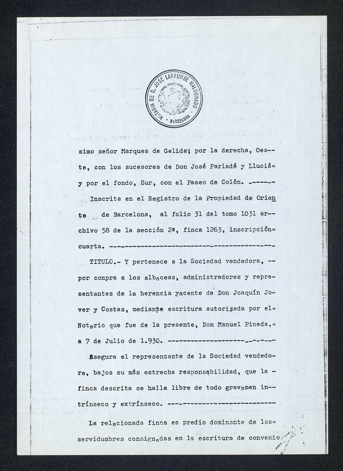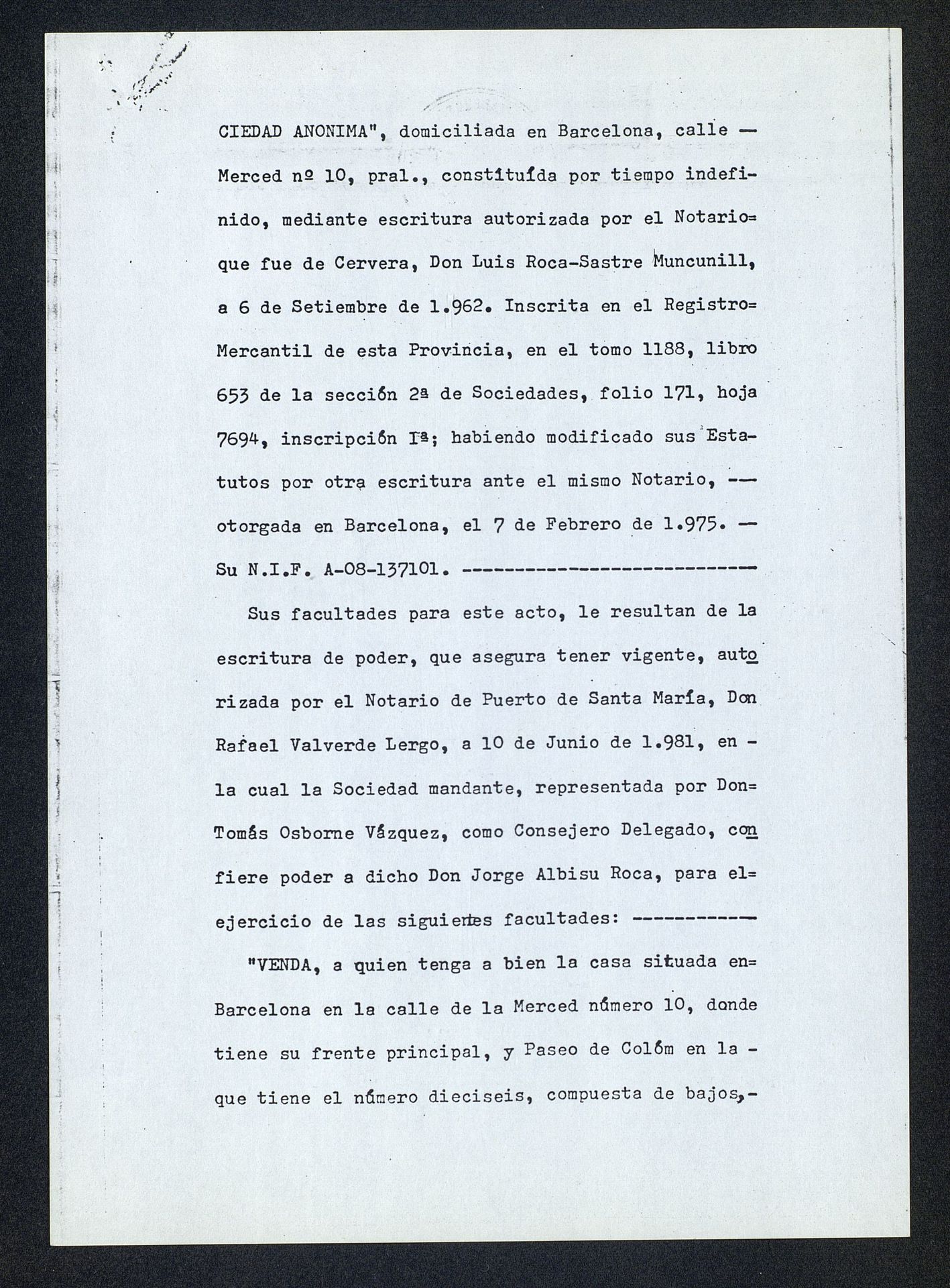 Copia simple de escritura de compra de local en calle Merced nº 10 de Barcelona (Cataluña, España)