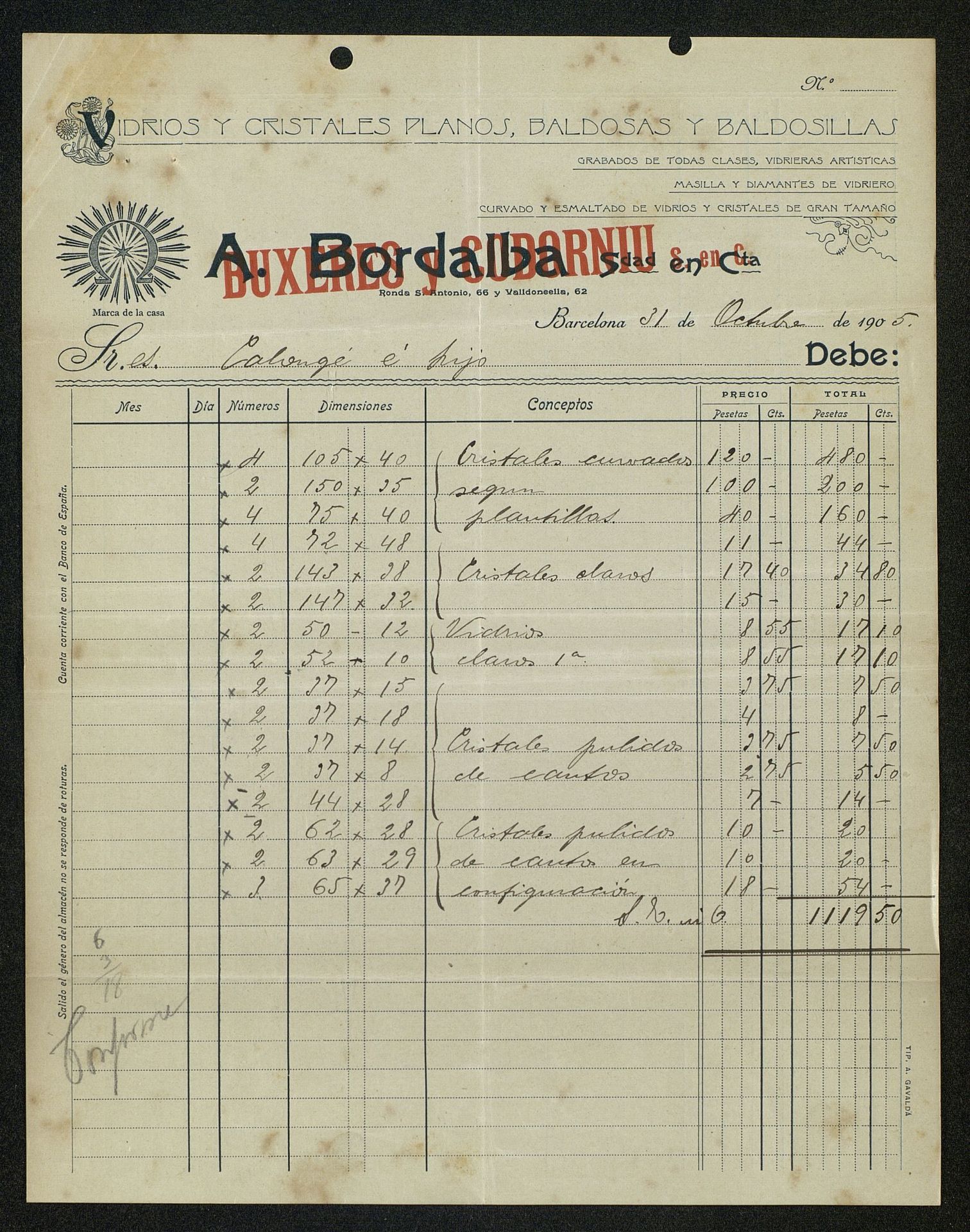 Factura de A. Bordalba vidrios y cristales, baldosas y baldosillas