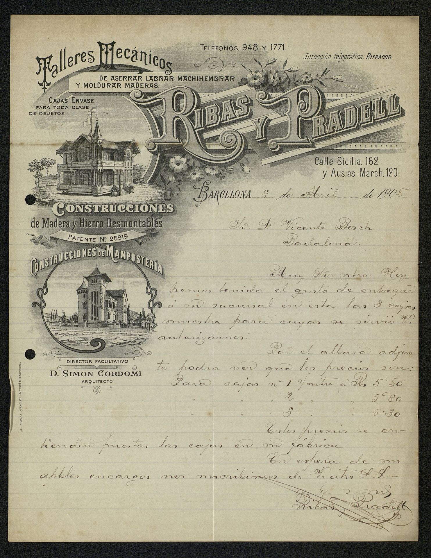 Albarán adjunto de cajas de madera de envase. Ribas y Pradell maderas y hierros, Barcelona (Cataluña, España)