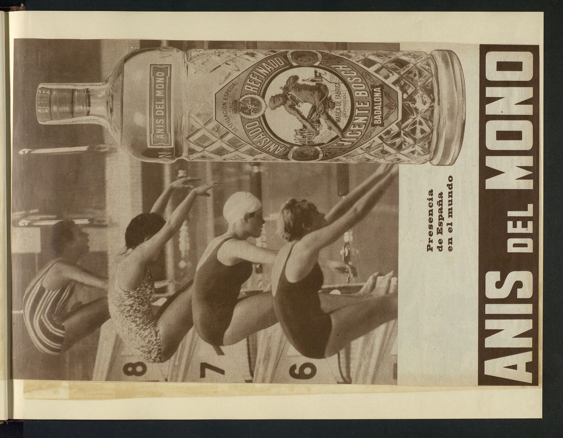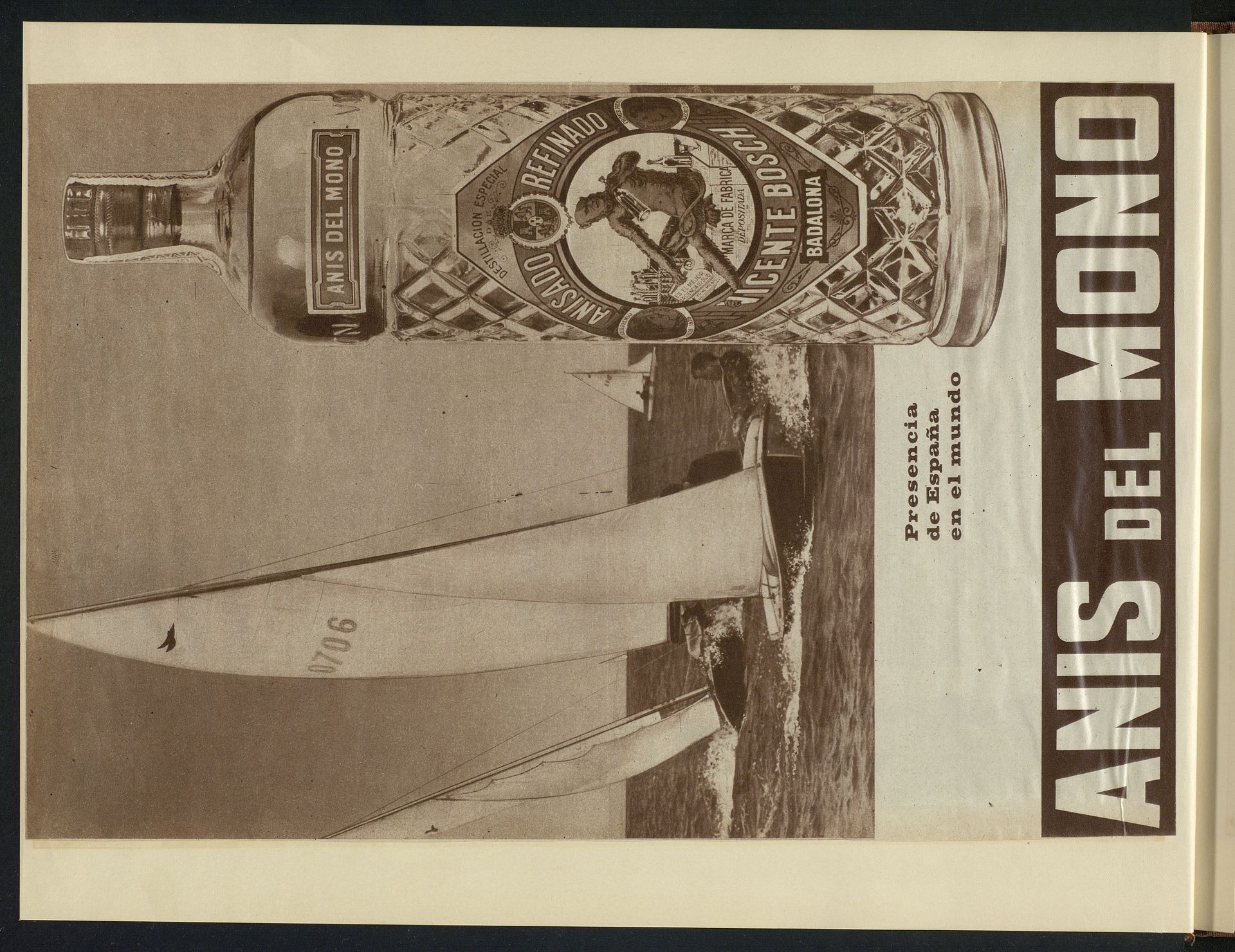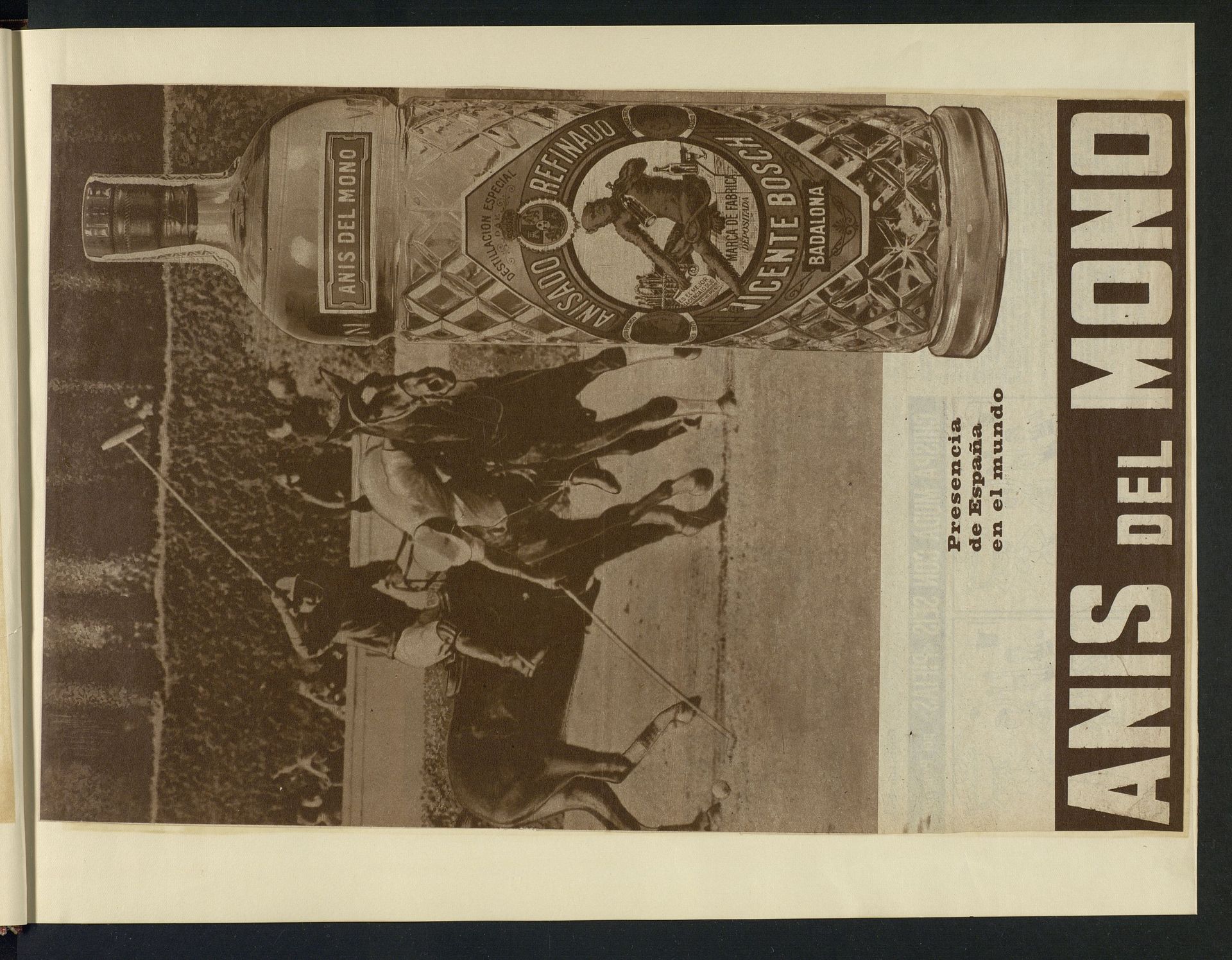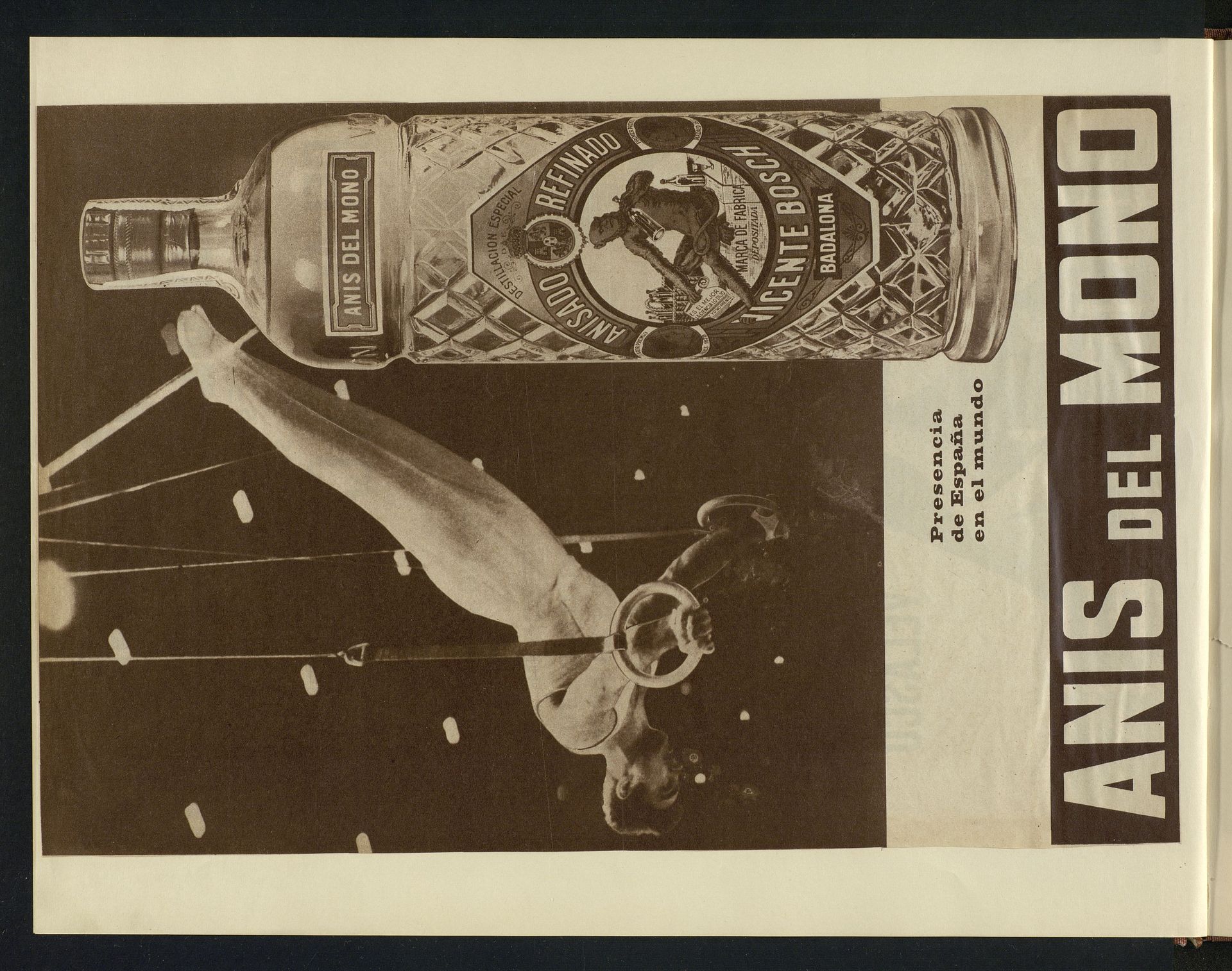 Álbum de Anís del Mono con anuncios vinculados a distintos deportes. Diez anuncios originales de prensa