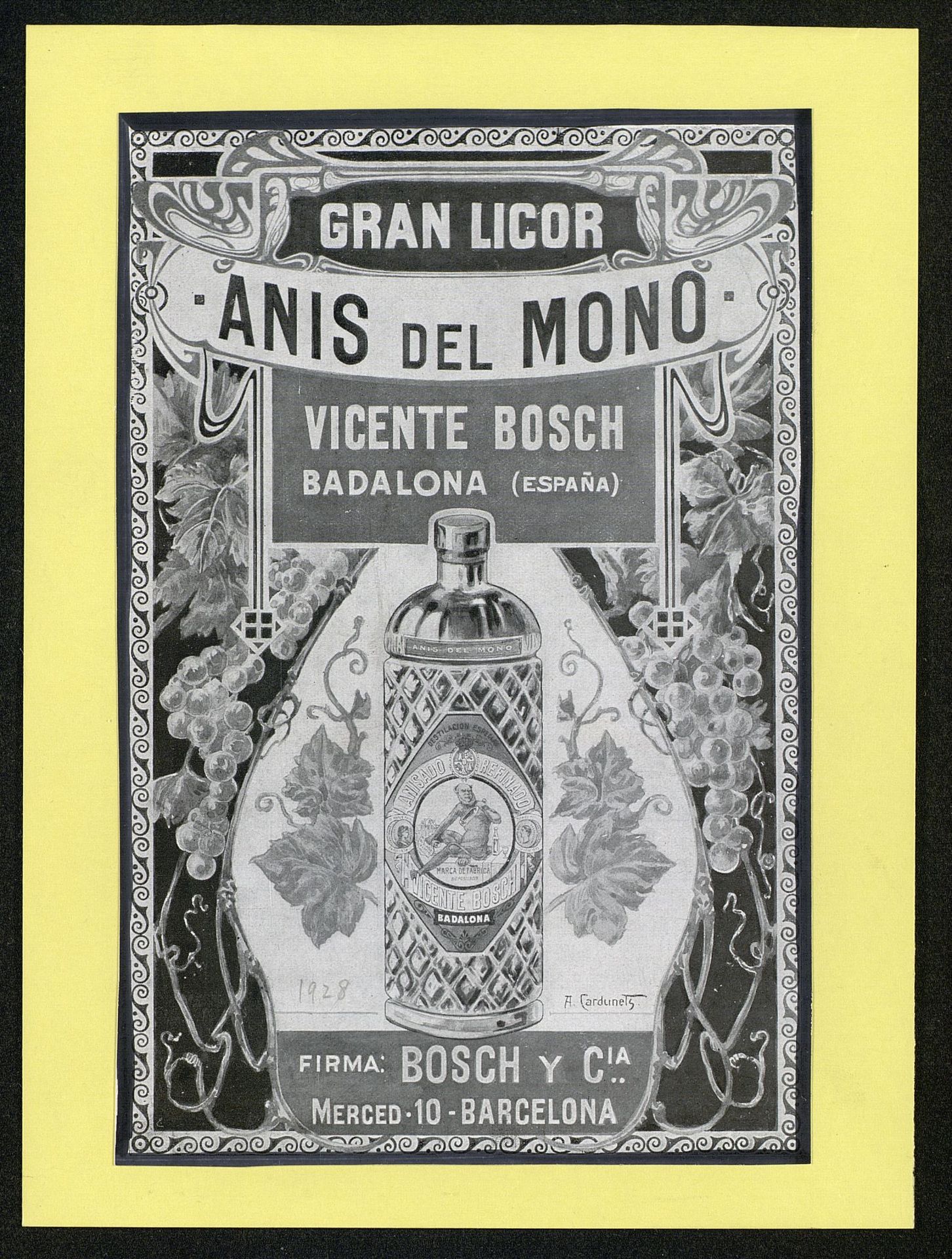 Gran Licor Anís del Mono, Vicente Bosch, Badalona (Cataluña, España) [Anuncio publicitario]