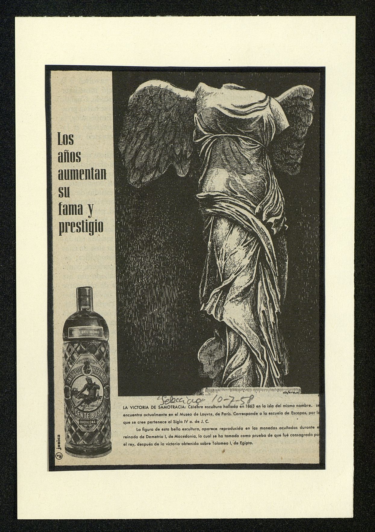 La Victoria de Samotracia, los años aumentan su fama y prestigio. Anís del Mono [Anuncio publicitario]