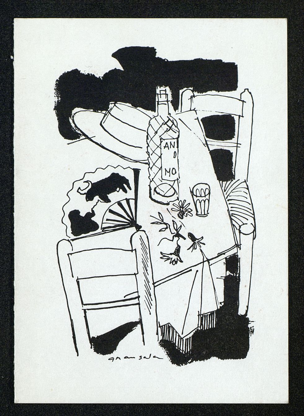 Tarjetón de Botella de Anís del Mono firmada por Gran Sala