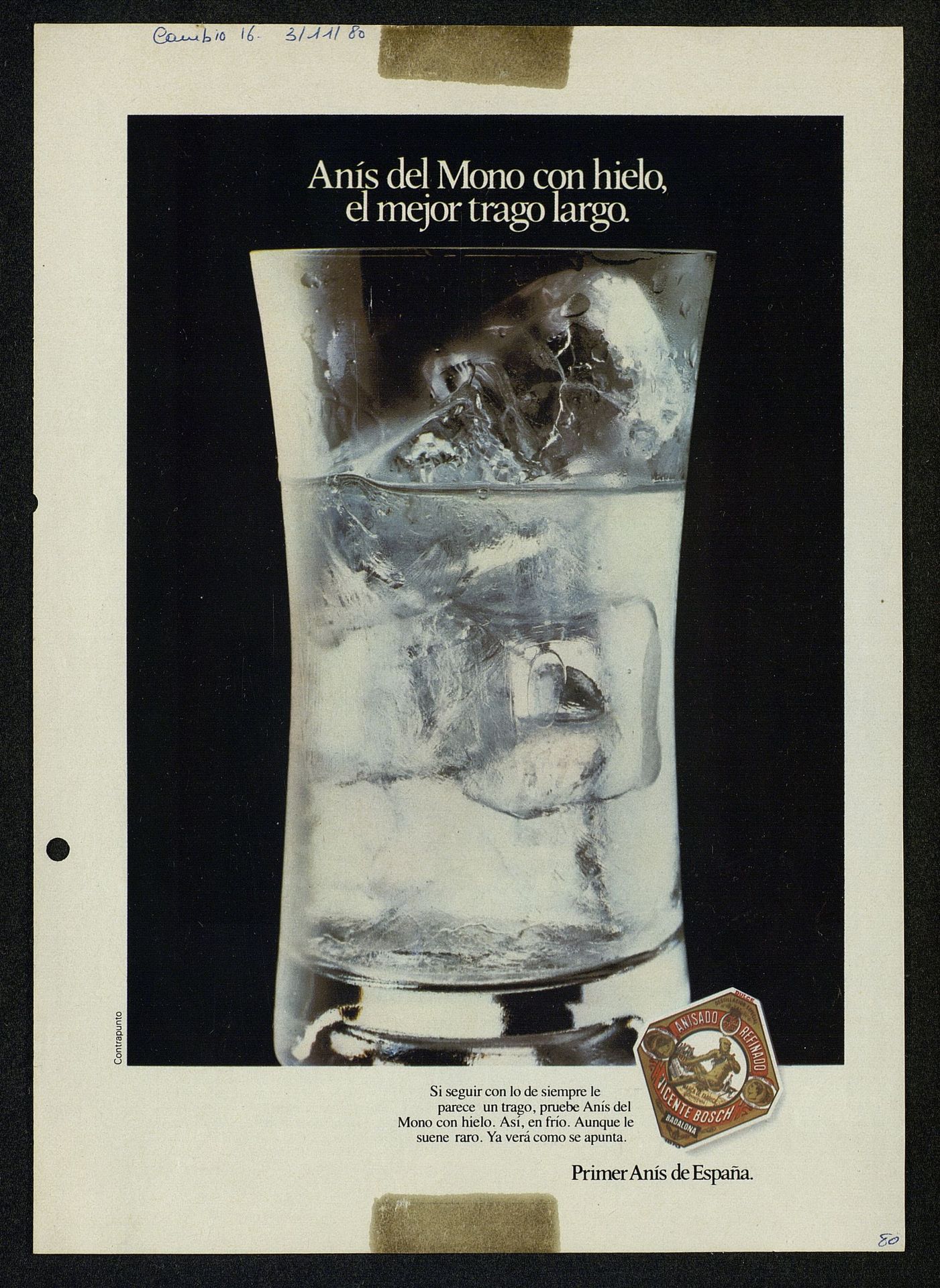 Anís del Mono con hielo el mejor trago largo. Primer Anís de España [Anuncio publicitario]