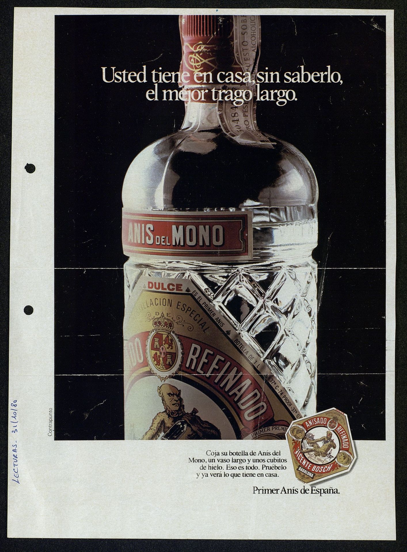 Usted tiene en casa, sin saberlo, el mejor trago largo.Anís del Mono [Anuncio publicitario]