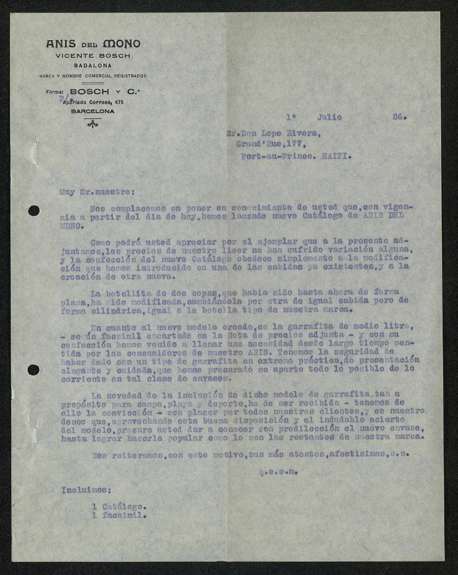 Tipo de documentoNo aplicaSoporte y volumen1Carta. Papel
