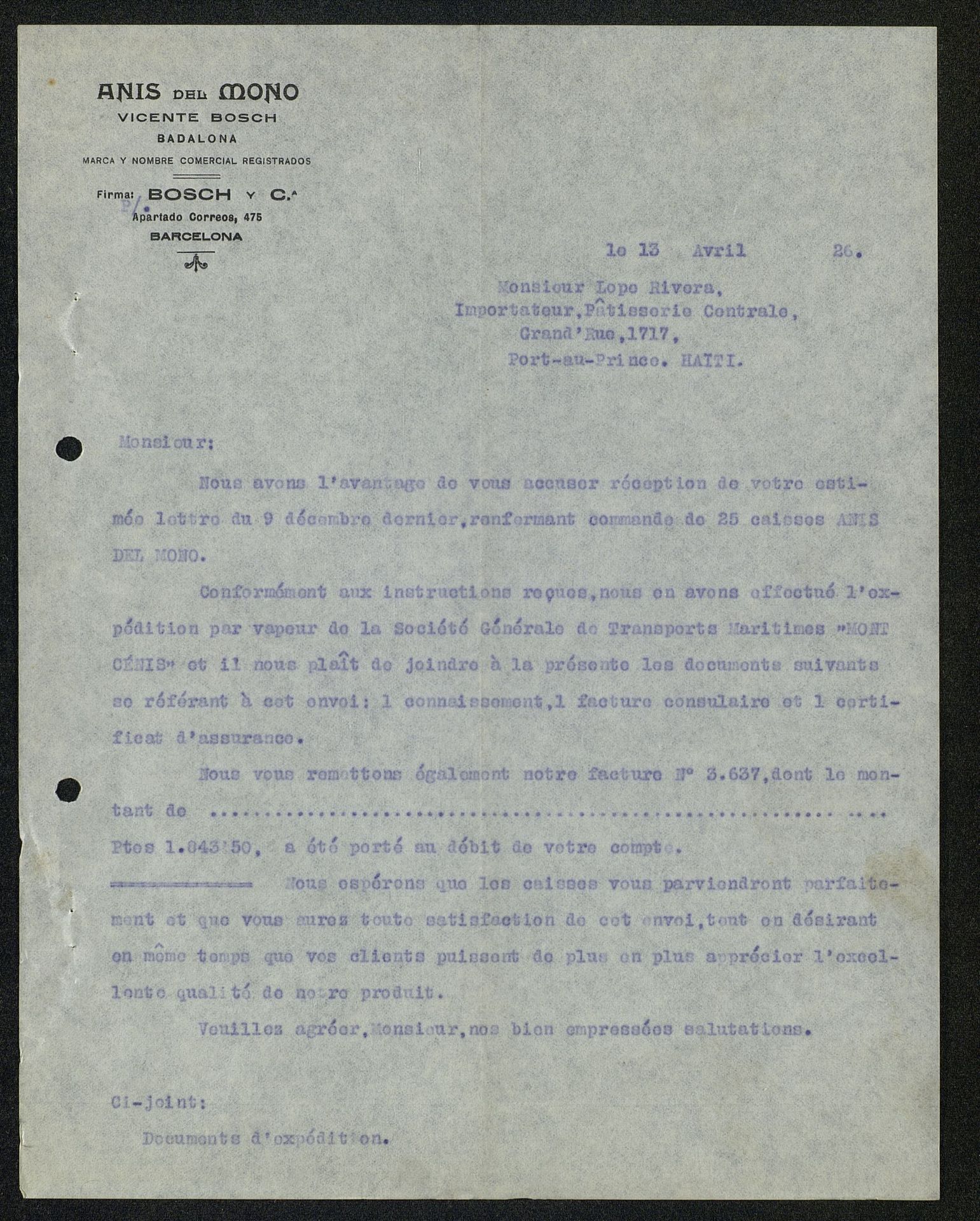 [Carta] 1926. abr. 13, Haití