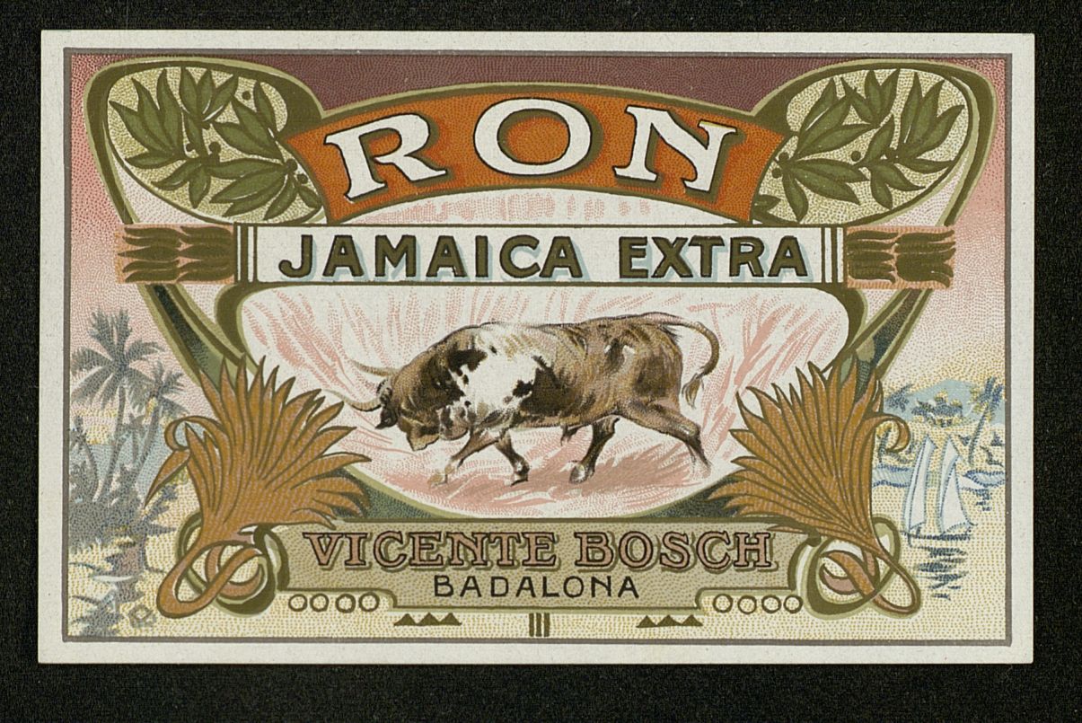 [Etiqueta bebida] Ron Jamaica de José Bosch y Hermano. Badalona (Cataluña, España)