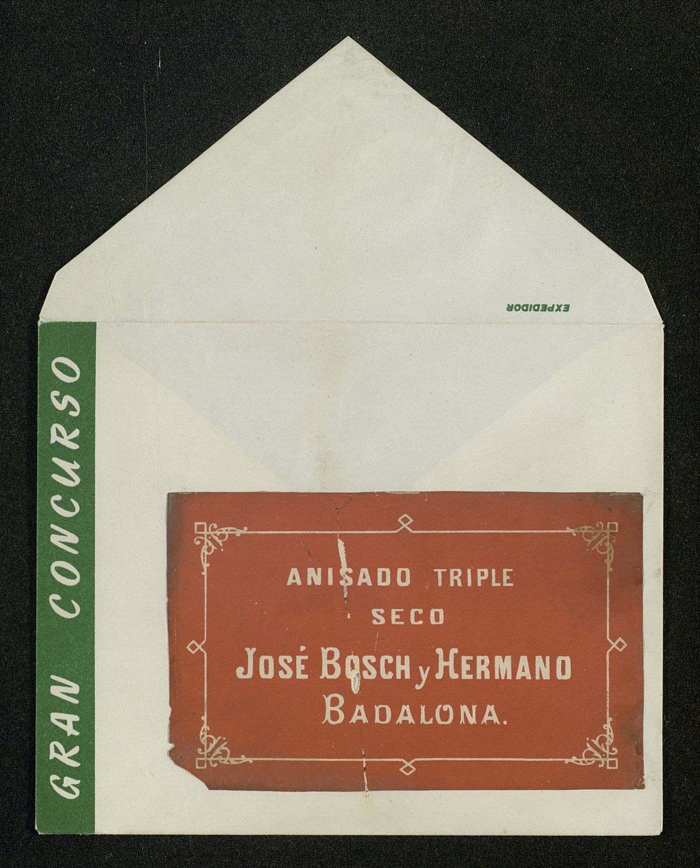Sobre de Gran Concurso con etiqueta de Anisado Triple Seco José Bosch y Hermano, Badalona (Cataluña, España)