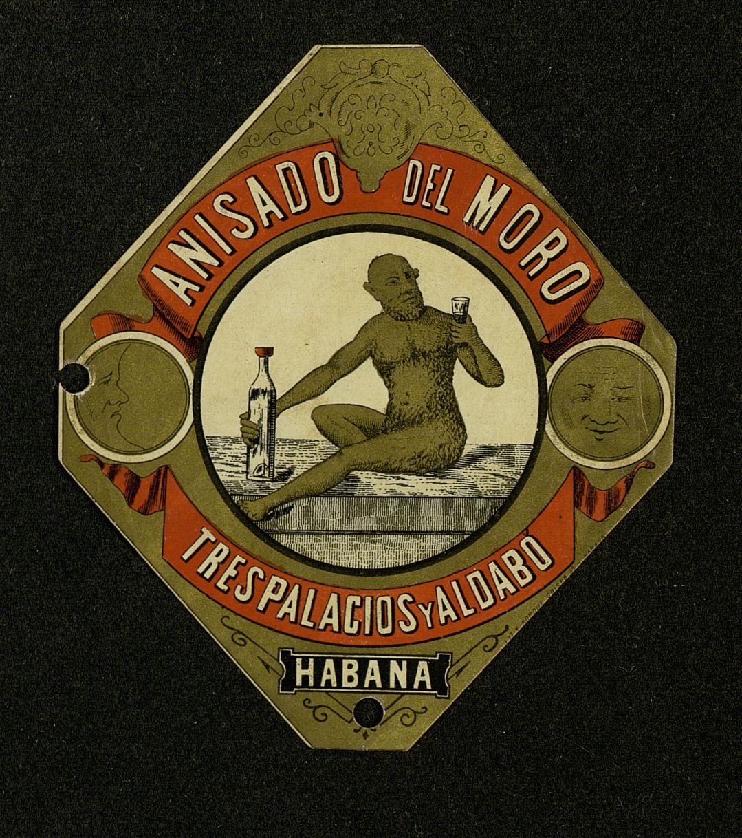 [Etiqueta bebida falsificada] Anisado del Moro, Anís del Momo, 1901, Trespalacios y Aldabo. Havana [La Habana, Cuba]