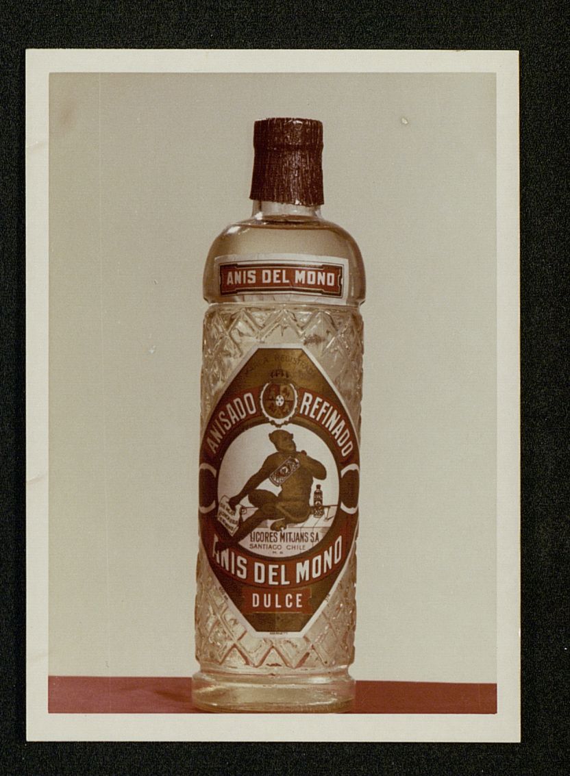 Botella de Anís del Mono Dulce con tapon de corcho y lámina q lo cubre de Licores Mitjans de Santiago de Chile [Fotografía]