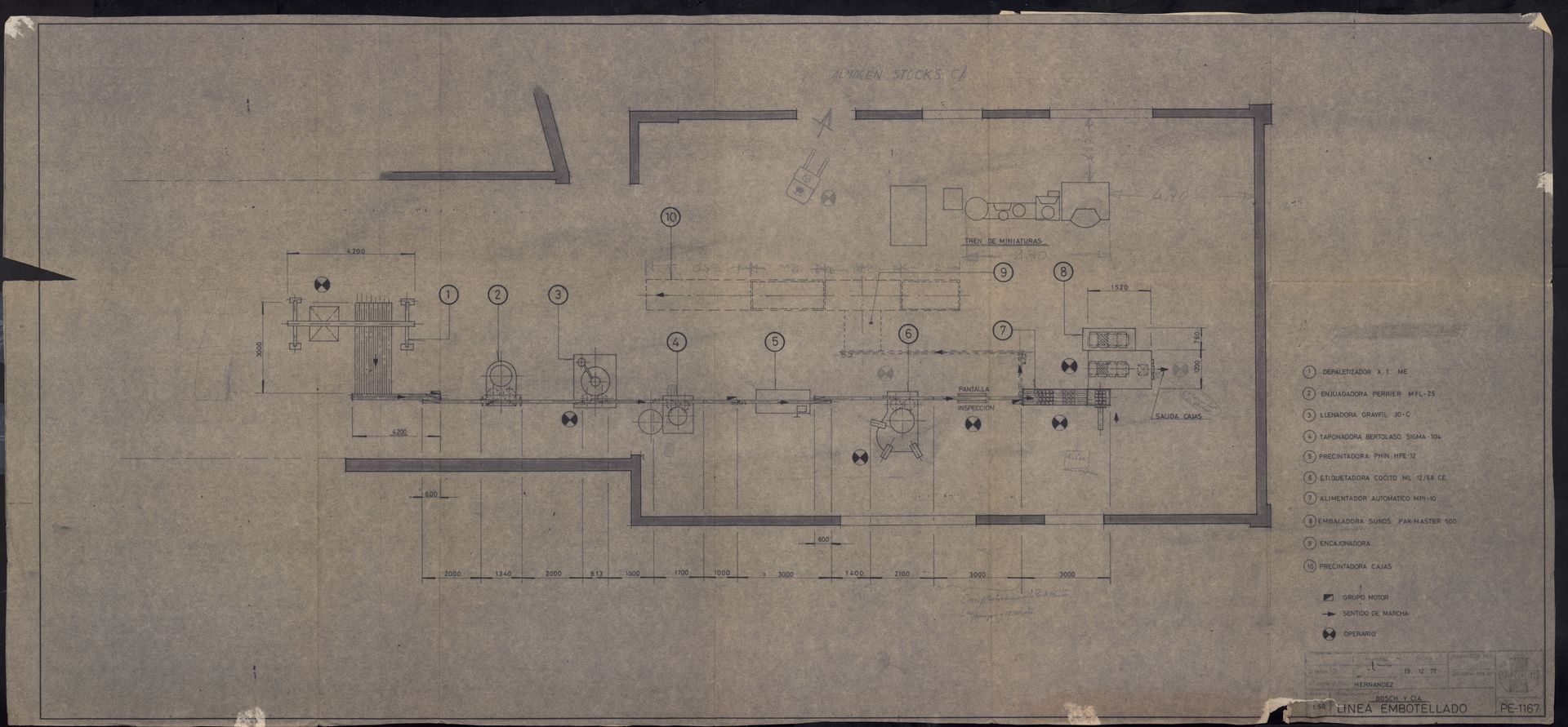 Línea de embotellado. Plano, 1977