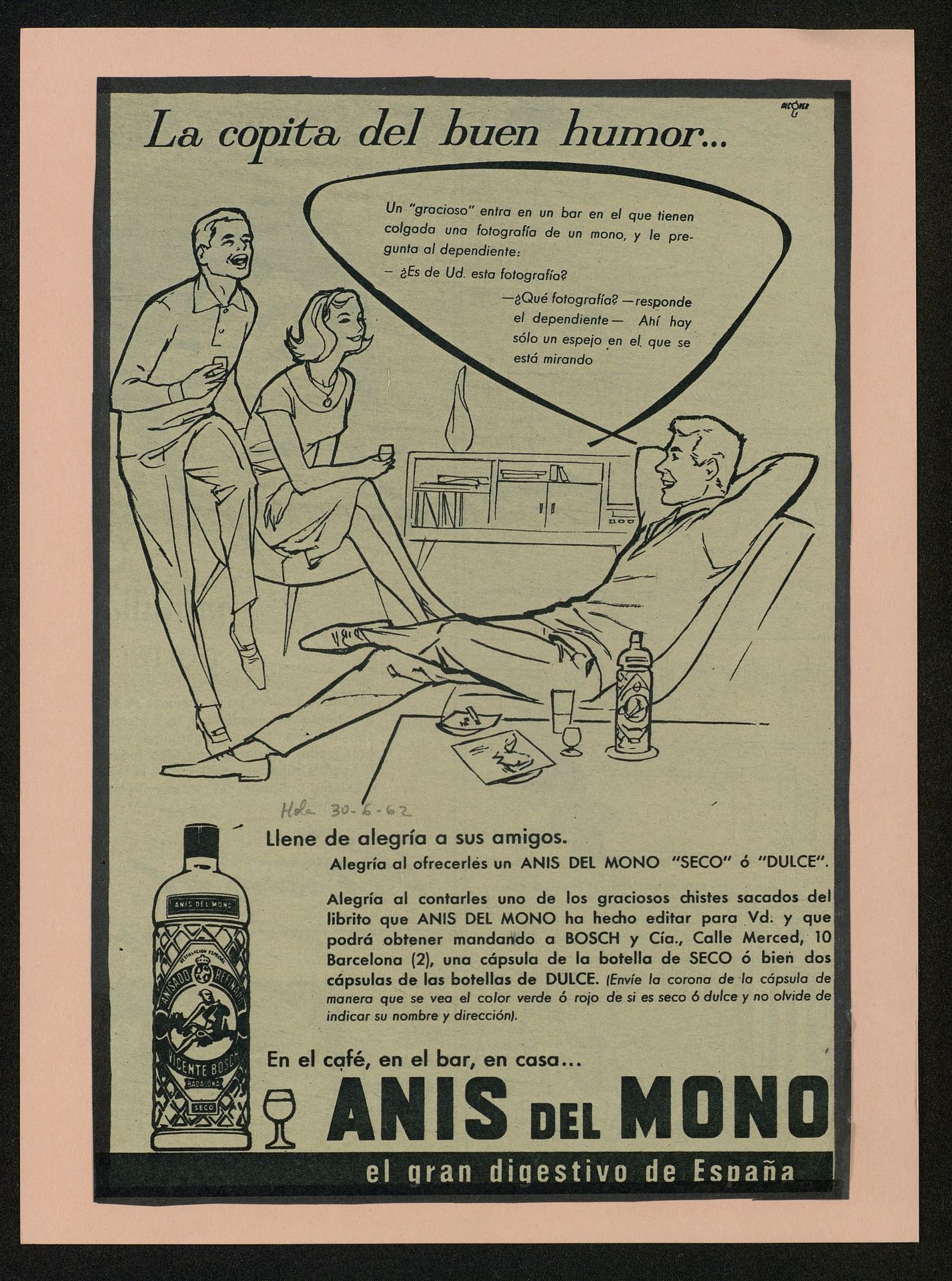 La copita del bueno humor...Un gracioso entra en un bar...Anís del Mono [Anuncio publicitario]