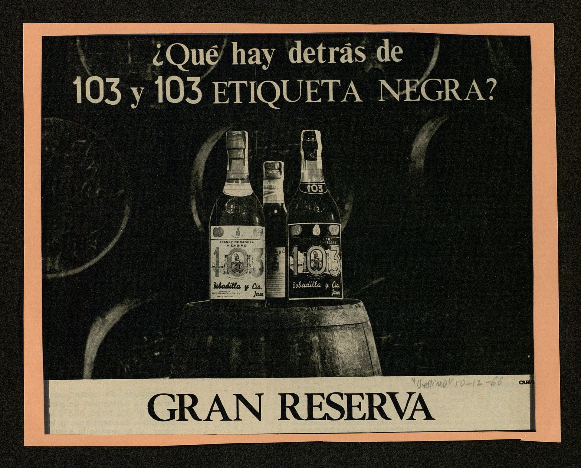 Qué hay detrás de 103 y 103 Etiqueta negra Brandy Bobadilla Gran Reserva