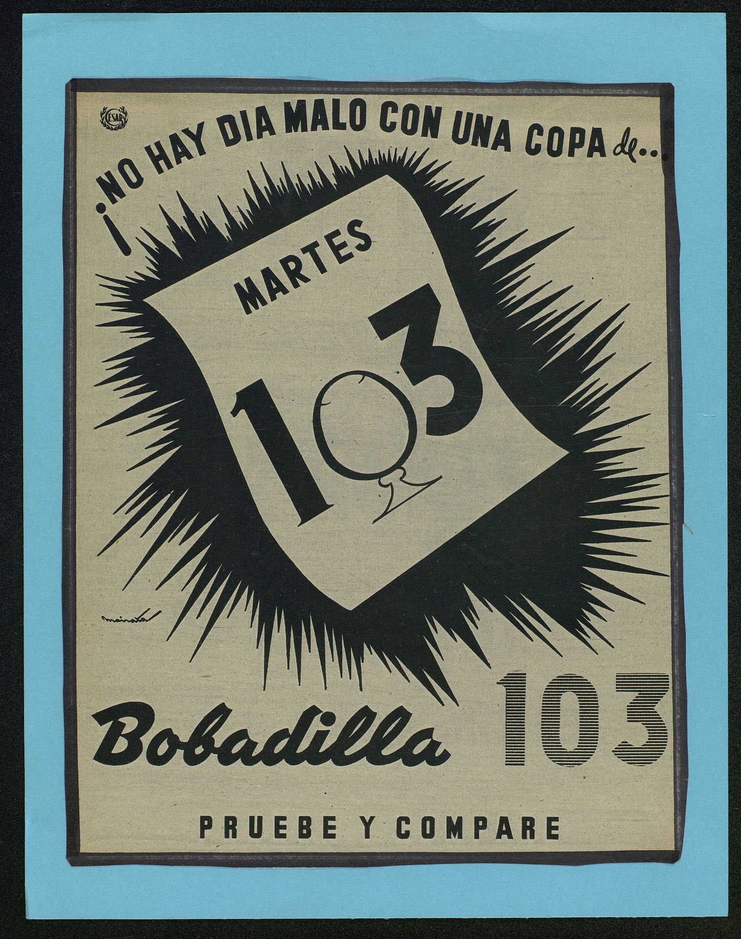 No hay día malo con una copa de 103 Bobadilla 103, pruebe y compare. Hoja de calendario con el día martes