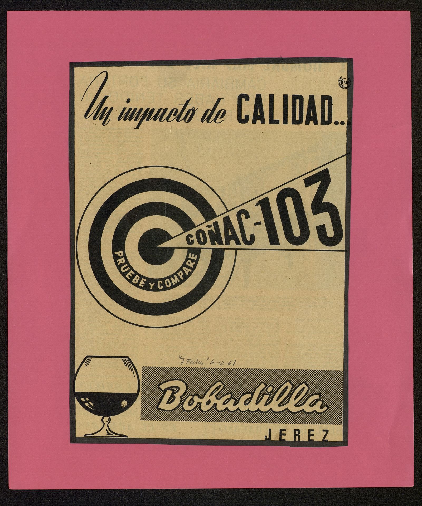 Un impacto de calidad..Coñac 103 Bobadilla Jerez. Diana con las palabras Pruebe y compare