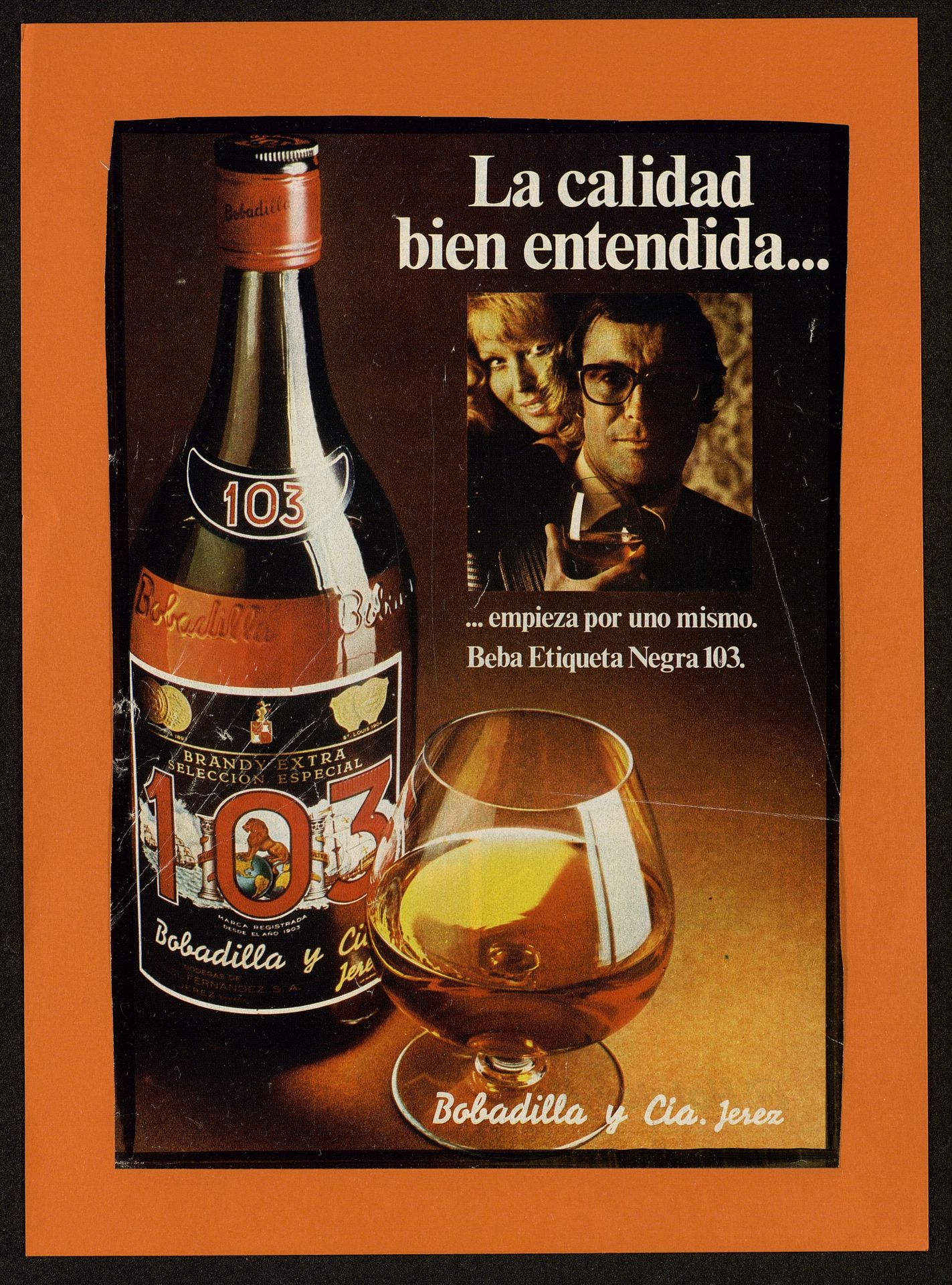 Bebe Etiqueta Negra 103 Bobadilla. La calidad bien entendida empieza por uno mismo. Pareja con copa de Brandy Extra