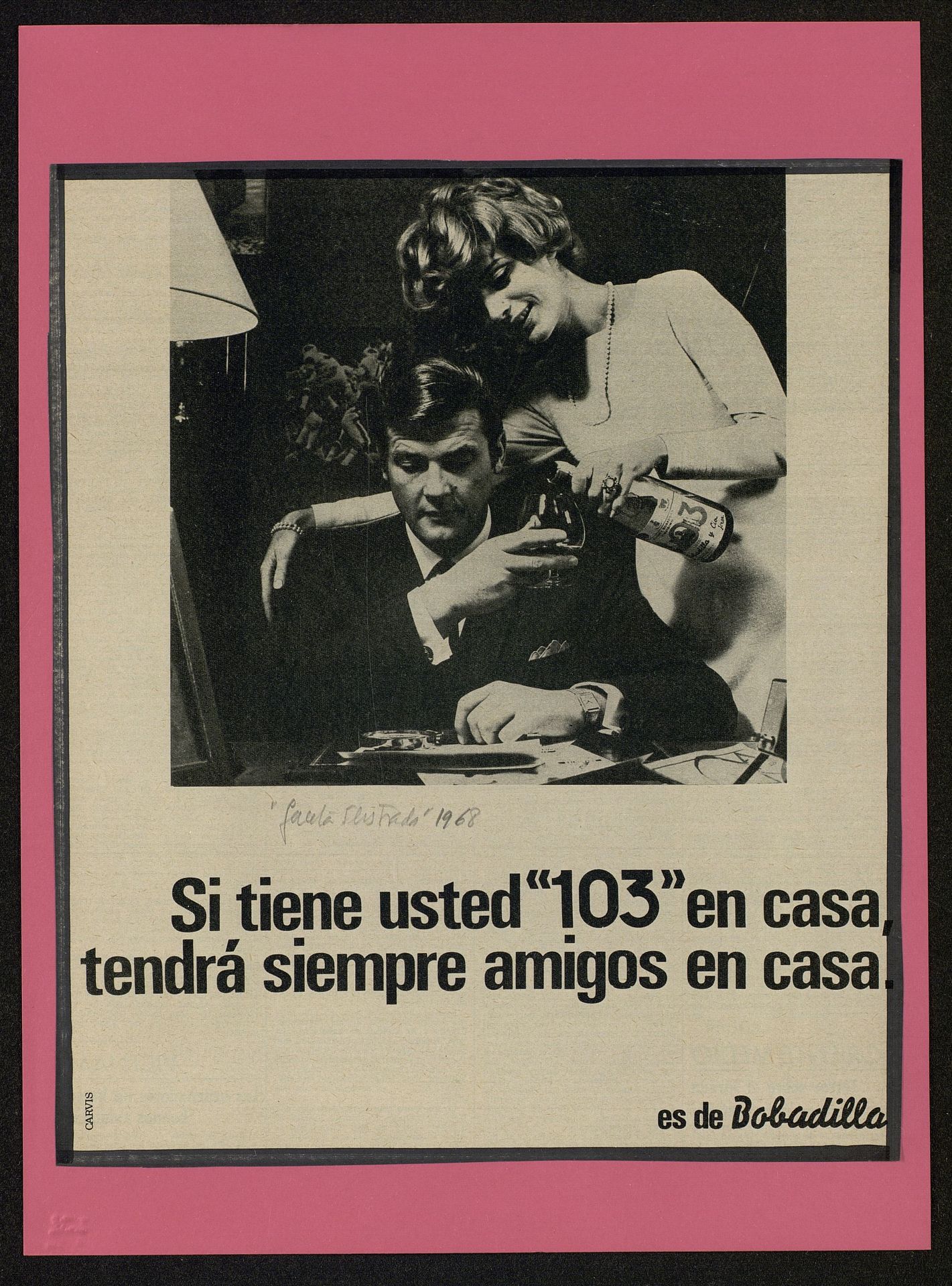 Si tiene usted 103 en cas, tendrá siempre amigos en casa. 103 es de Bobadilla. Señora con botella de 103 sirviendo en la copa de un señor