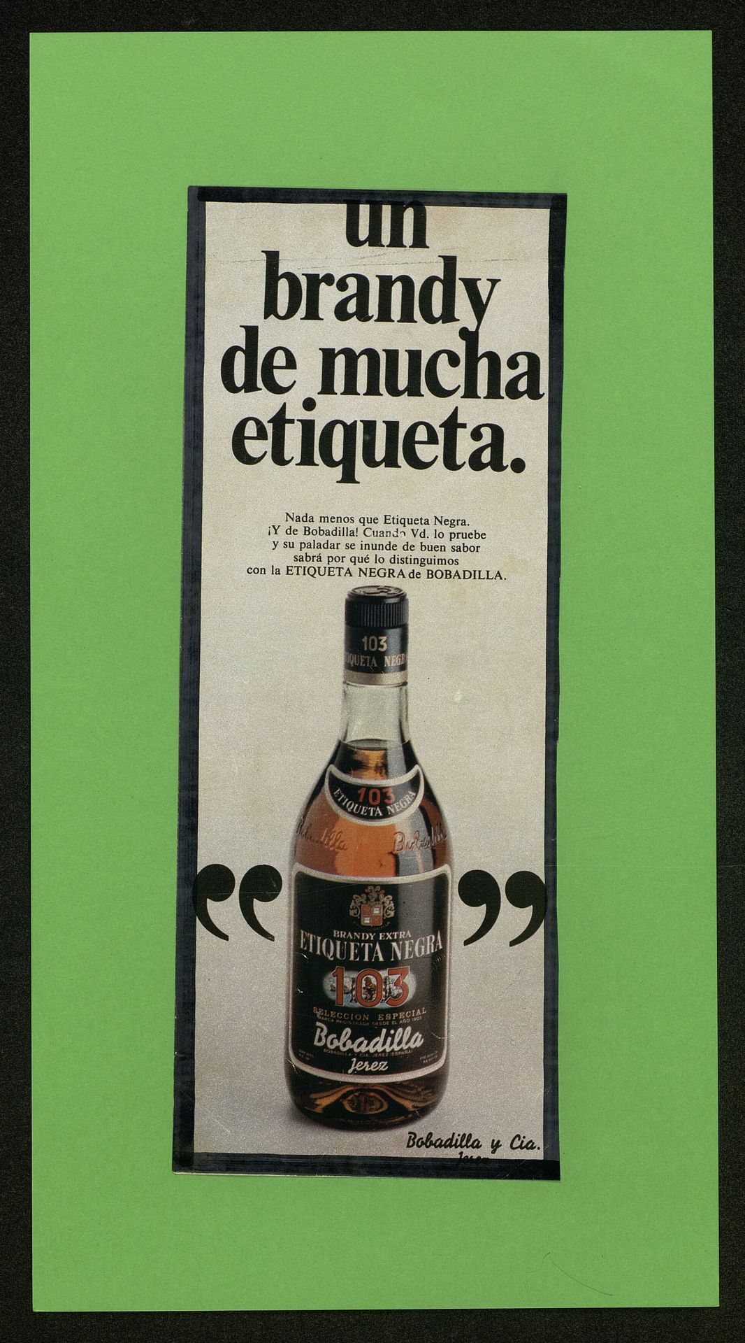 Un brandy de mucha etiqueta. Nada menos que etiquete negra. Botella de Brandy Extra Etiqueta Negra