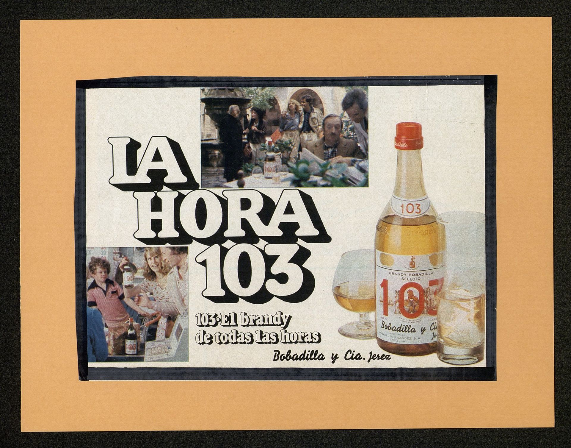 La hora 103. El brandy de todas horas. Imágenes con la botella de 103, un supermercado, terrazas...
