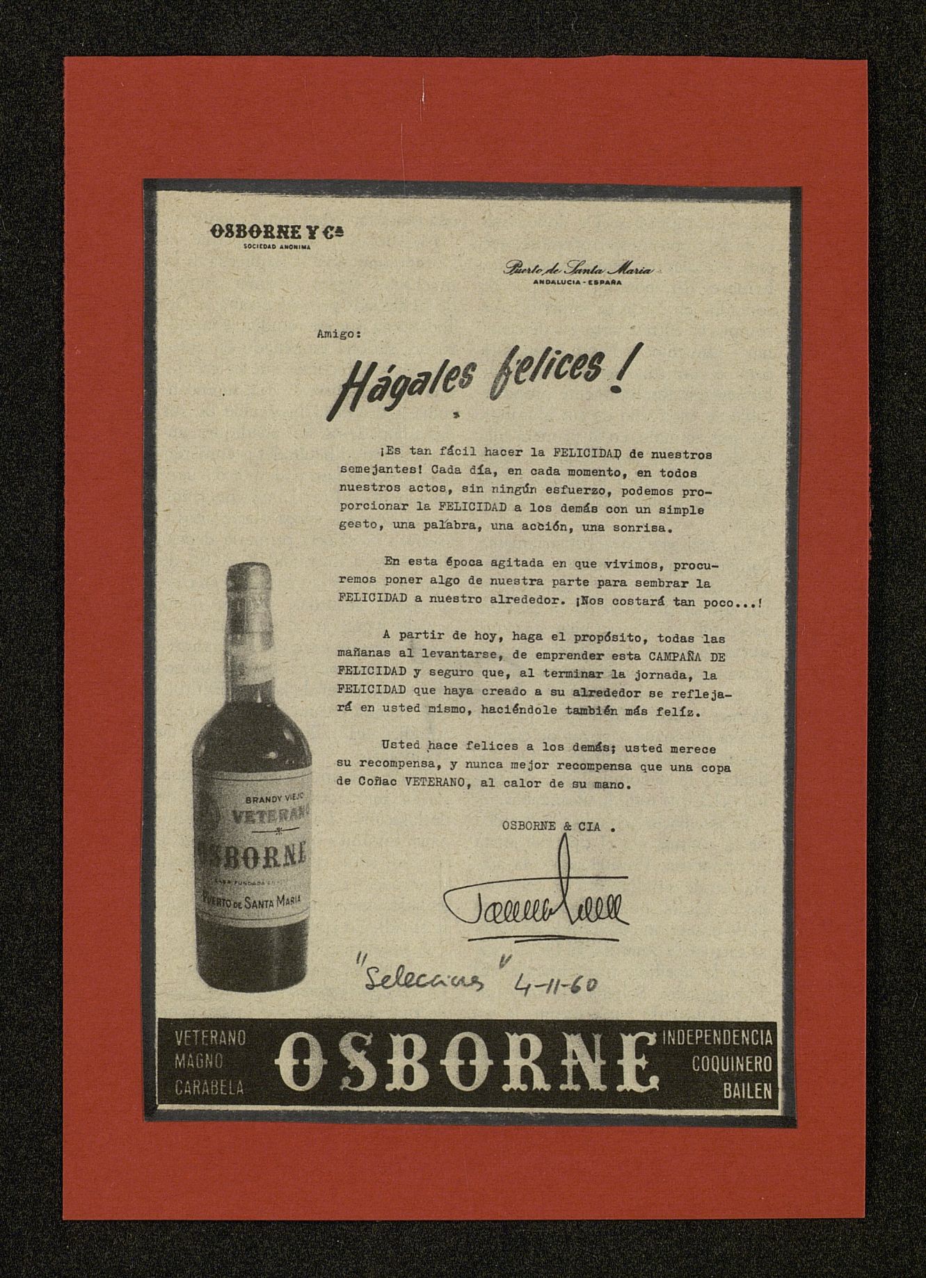 Carta membrete Osborne. Hágales felices