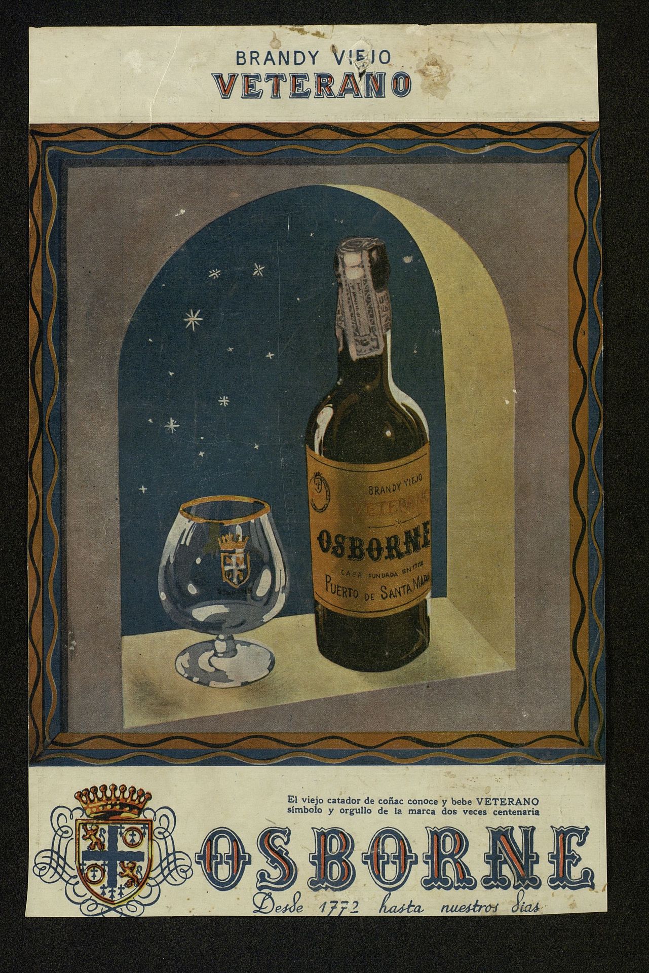 Brandy viejo Veterano. El viejo catador de coñac conoce y bebe Veterano, símbolo y orgullo de la marca dos veces centenaria
