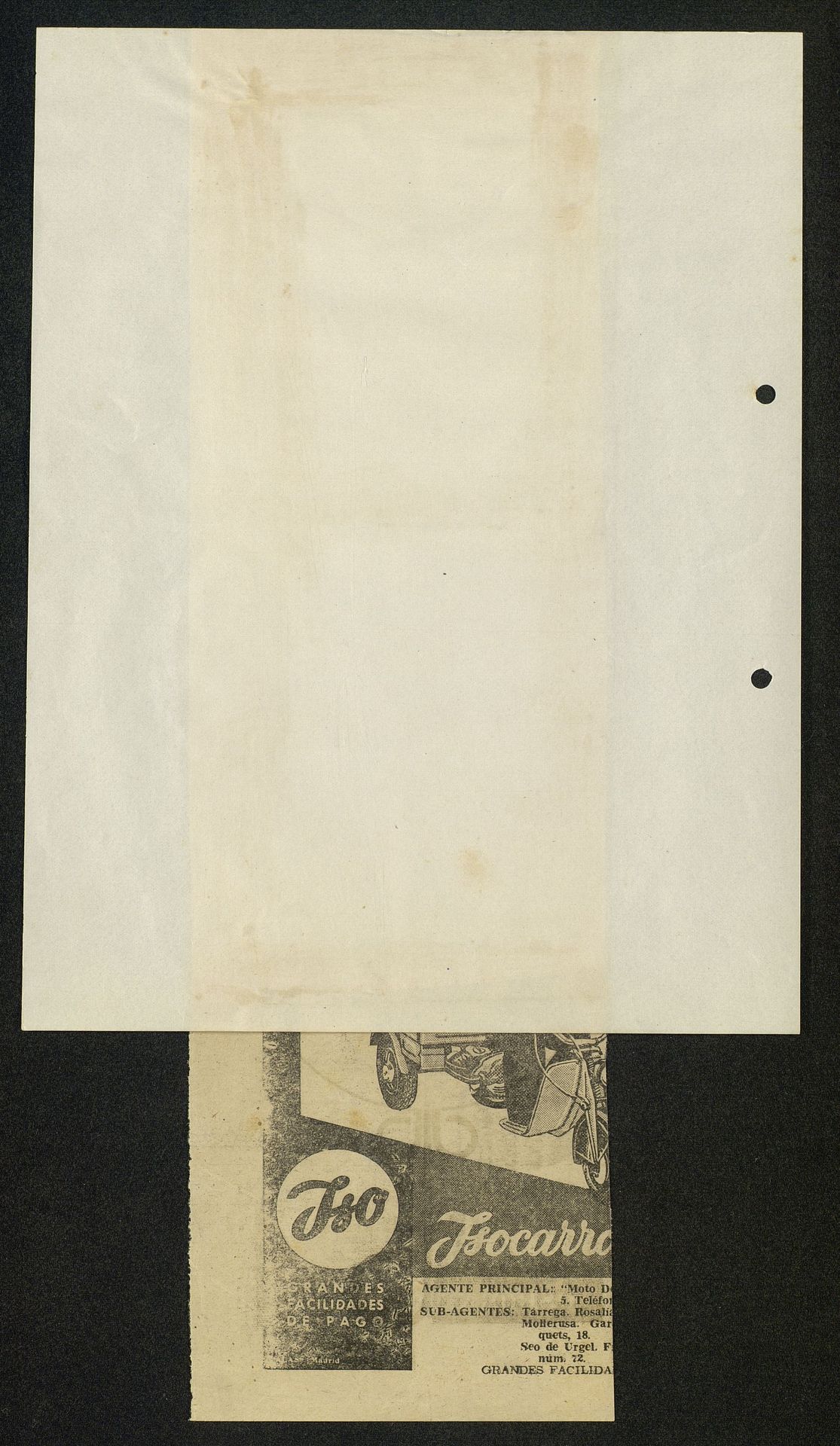 Tipo de documentoNo aplicaSoporte y volumen1Hoja : B/N. Papel