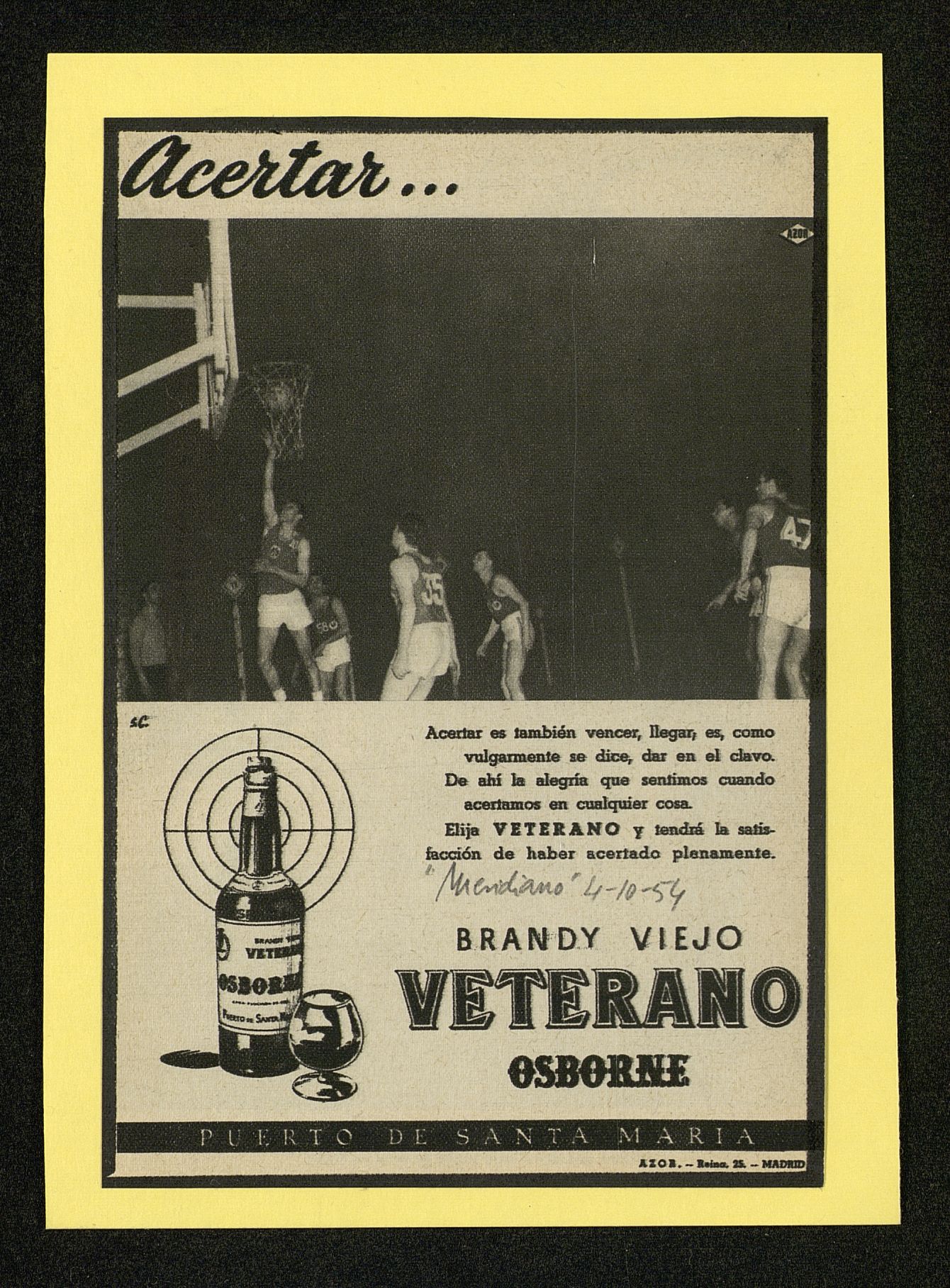 Acertar... acertar es también vencer... Brandy Viejo VETERANO Osborne. Equipo de baloncesto