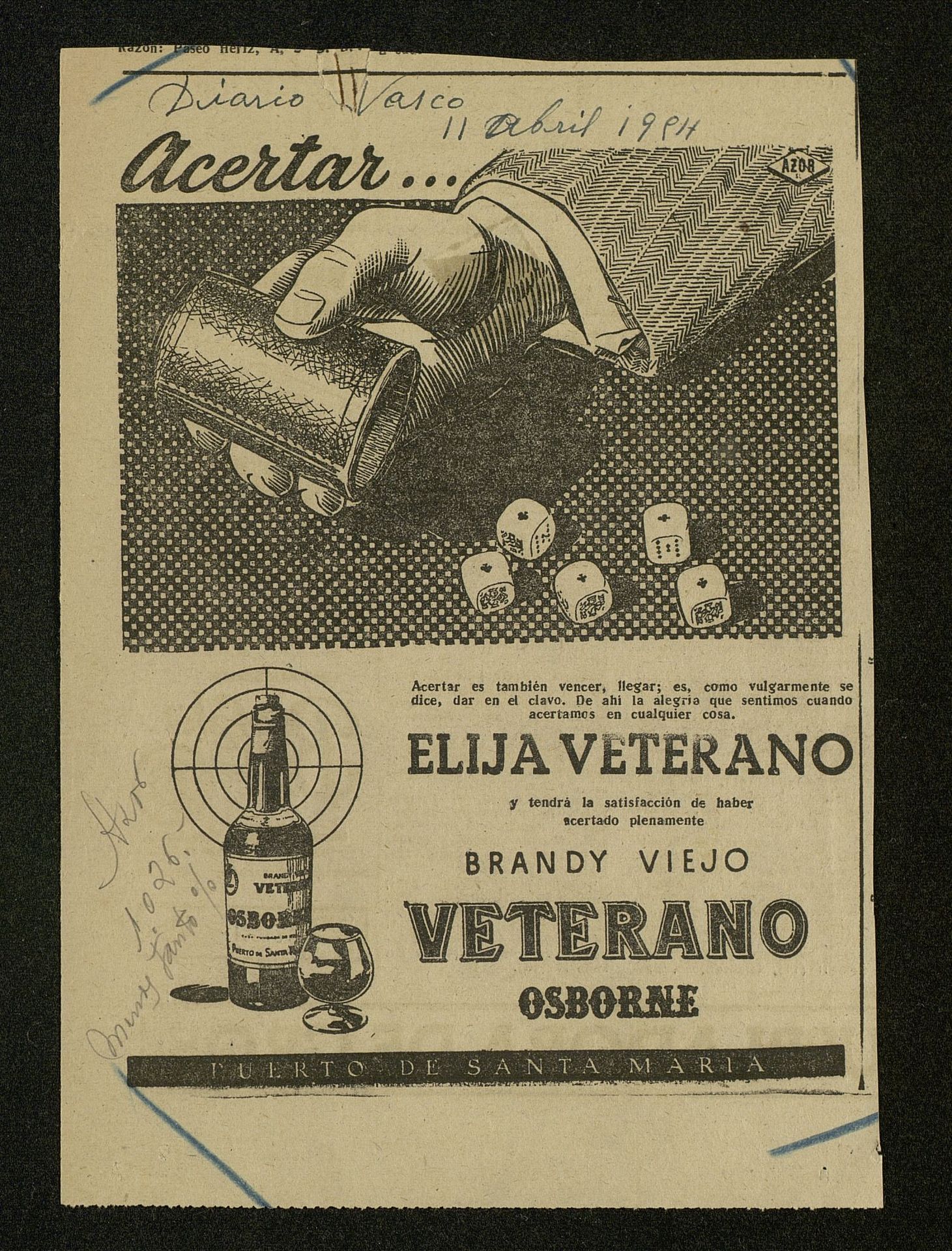 Acertar... acertar es también vencer... Brandy Viejo VETERANO Osborne. Partida de dados