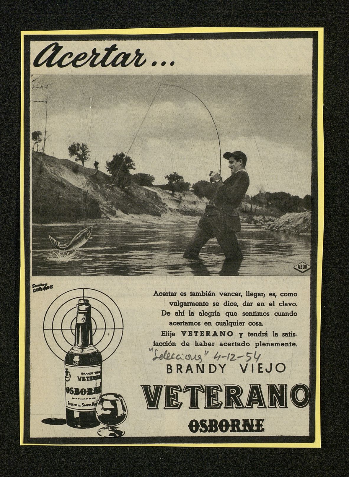 Acertar... acertar es también vencer... Brandy Viejo VETERANO Osborne. Pescador