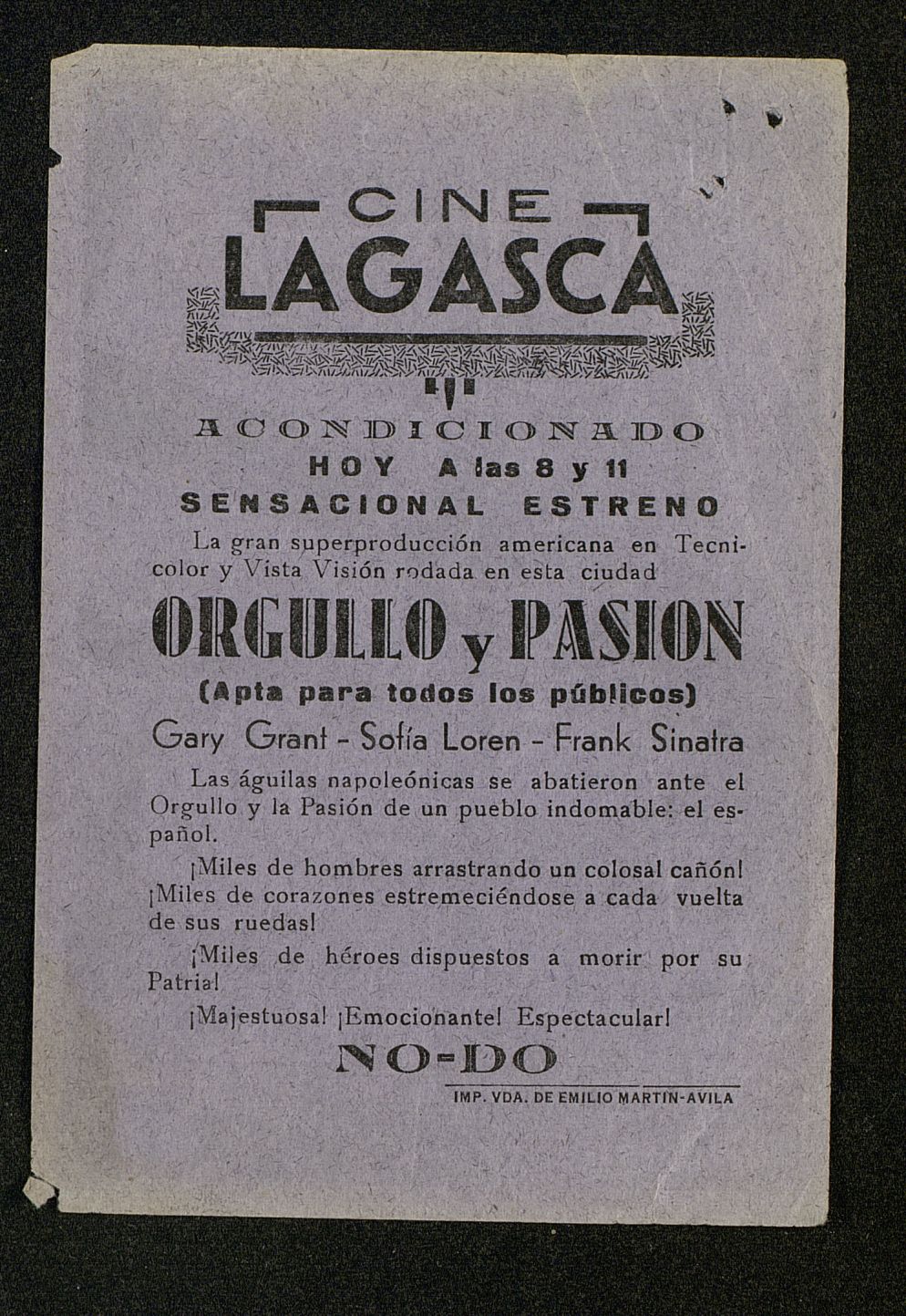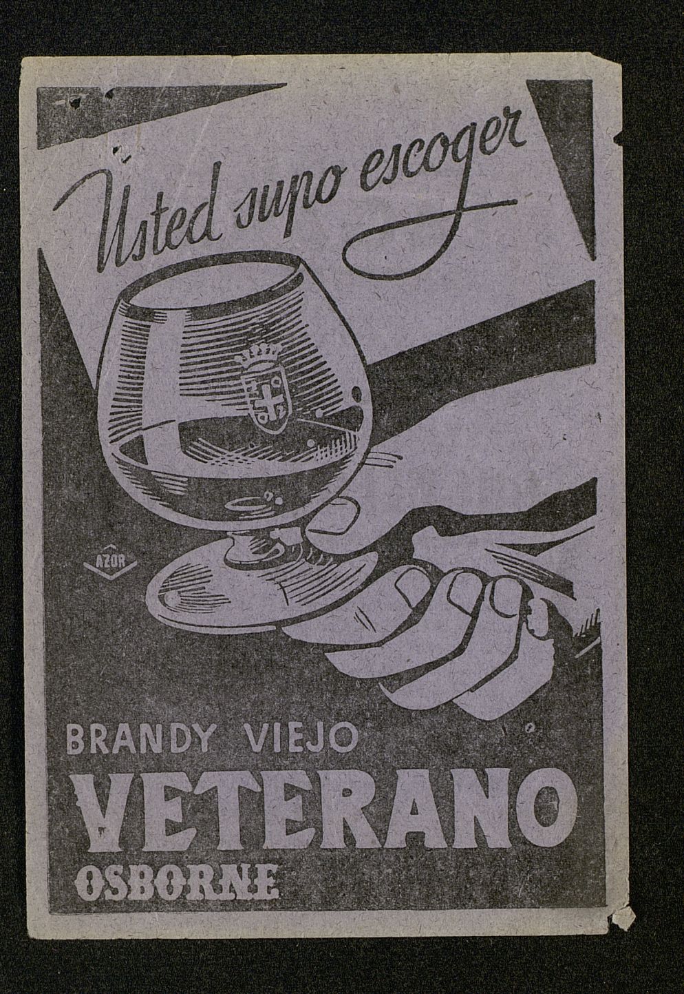 Usted supo escoger, Brandy viejo VETERANO. Publicidad verso de la cartelera Cine Lagasca Orgullo y pasión. Lila