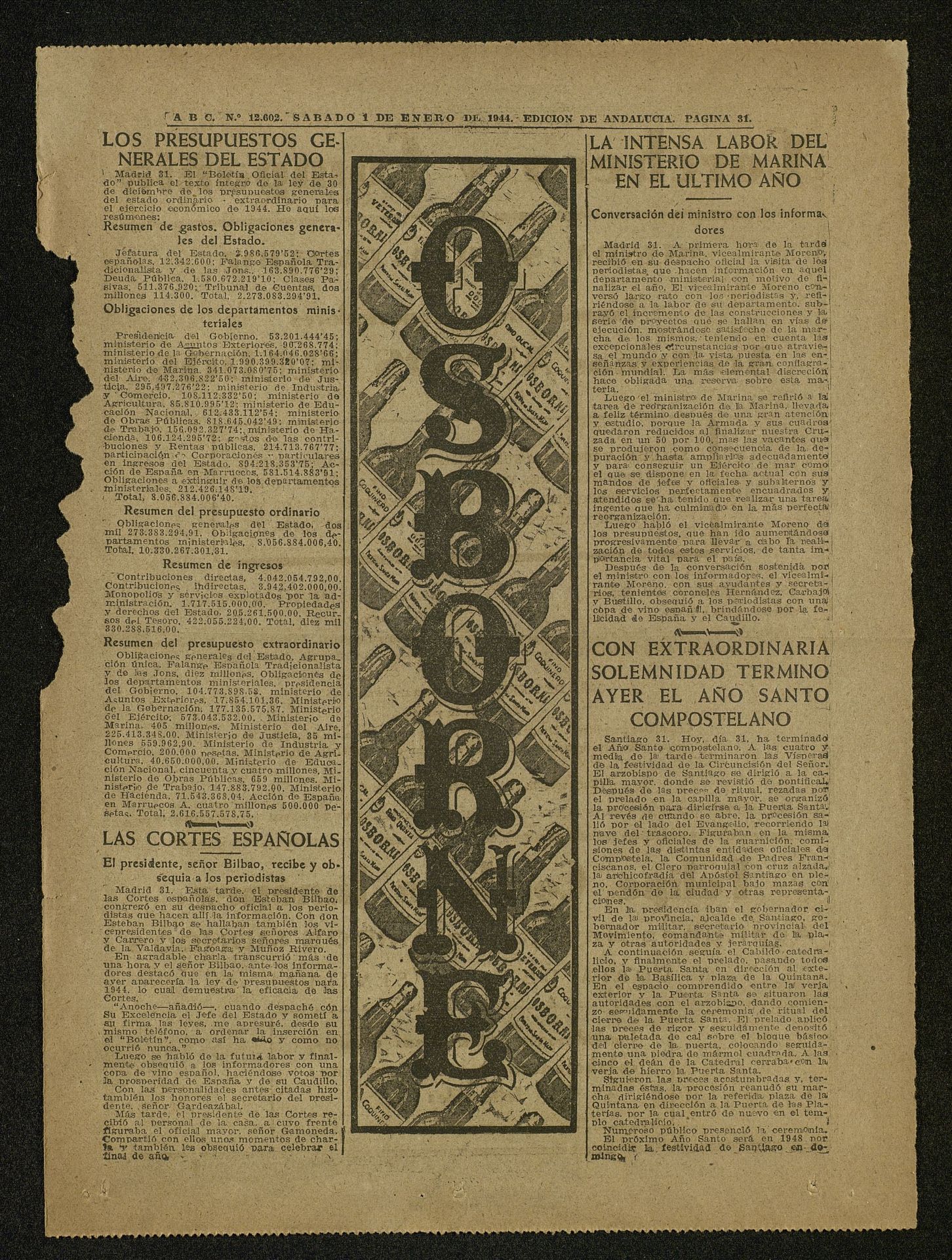Osborne. Botellas de Coquinero, Fino Quinta, Ducal...