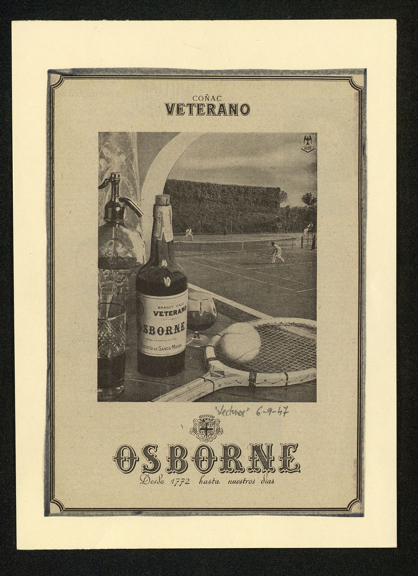 Coñac Veterano Osborne. Partido de tenis