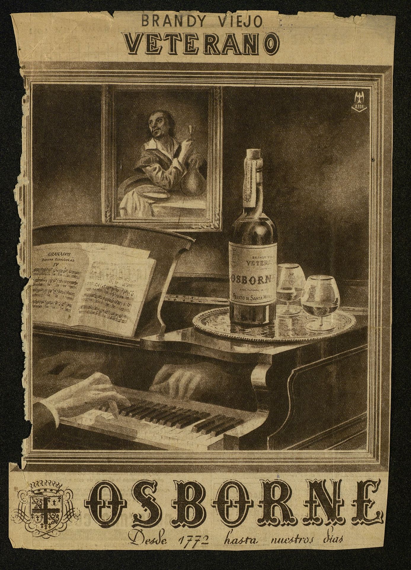 Brandy viejo Veterano Osborne. Piano