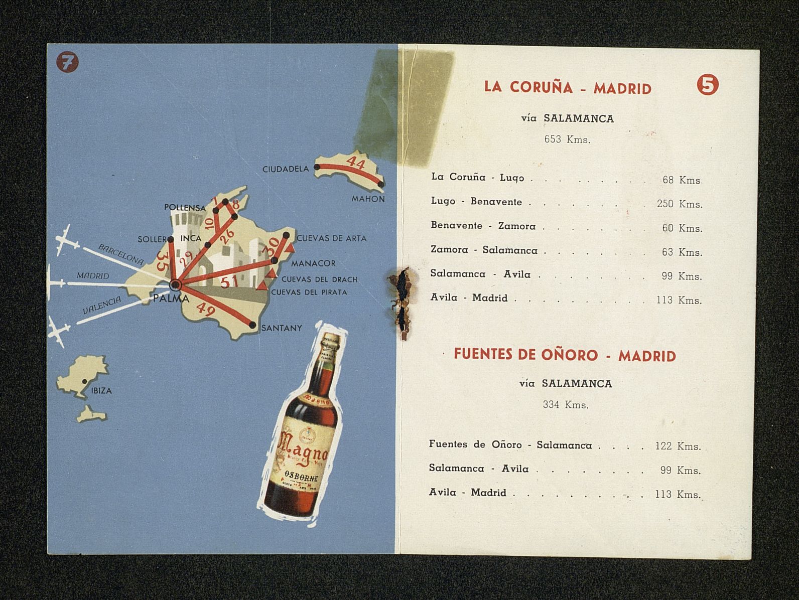 Magno. Carreteras y kilometros entre las cuidades La Coruña -Madrid...Mapa, texto en inglés