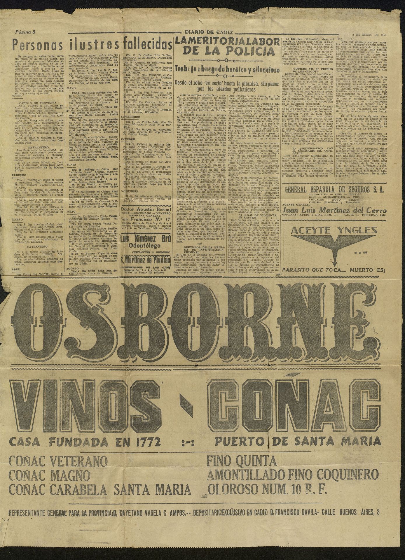 Osborne, vinos y coñac. Casa fundada en 1772, Puerto de Santa María (Cádiz, Esapaña) Coñac Veterano, Magno, Carabela, Fino Quinta, Amontillado Fino Coquinero, Oloroso N 10 R.F.