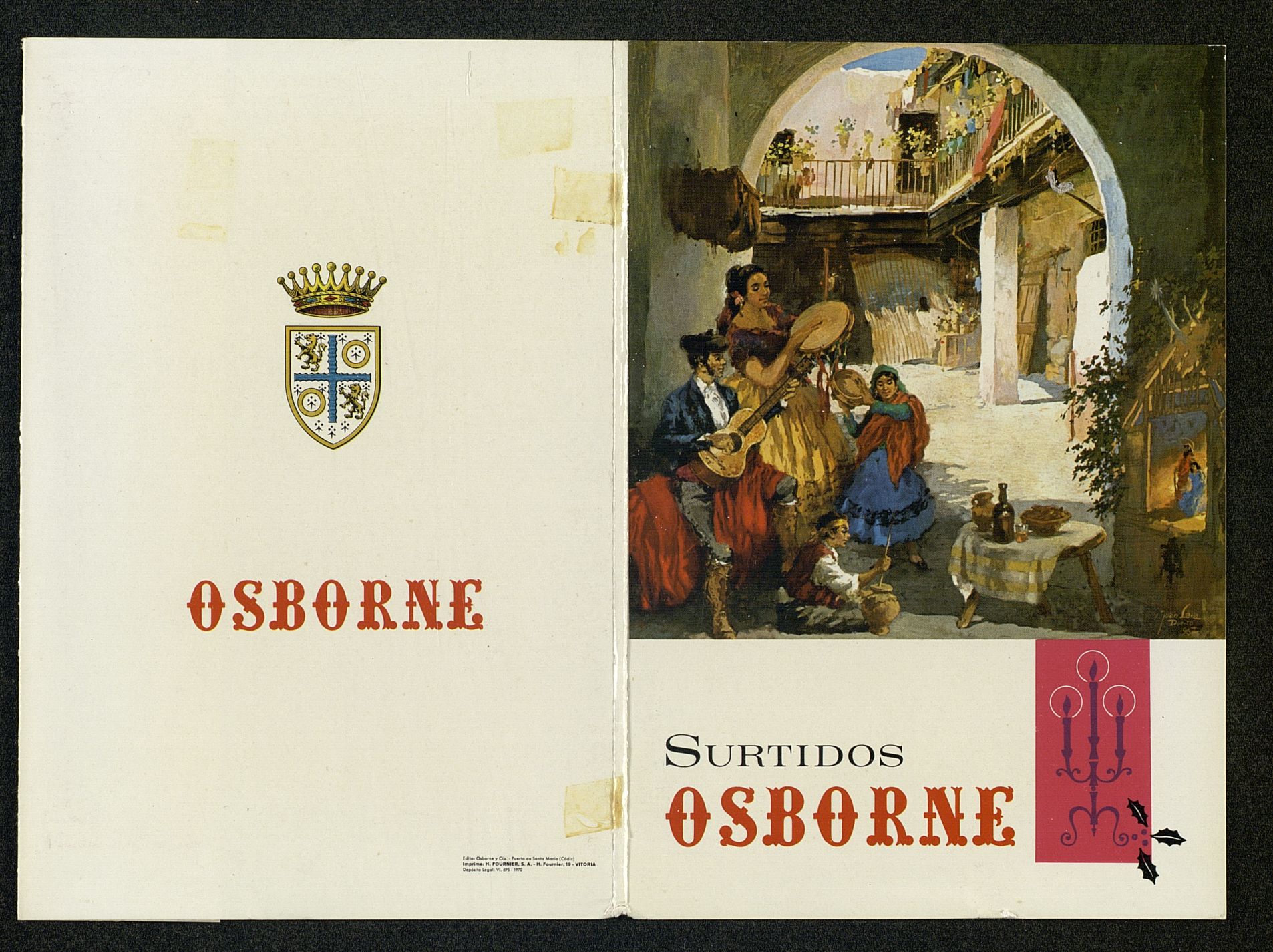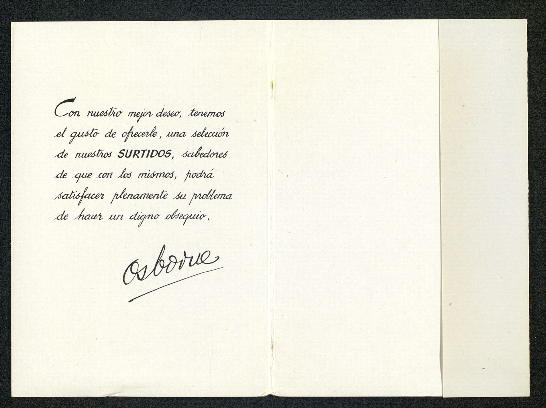 Surtidos Osborne. Con nuestro mejor deseo, tenemos el gusto de ofrecerle... Funda para guardar las fotografías de los estuches de bebidas