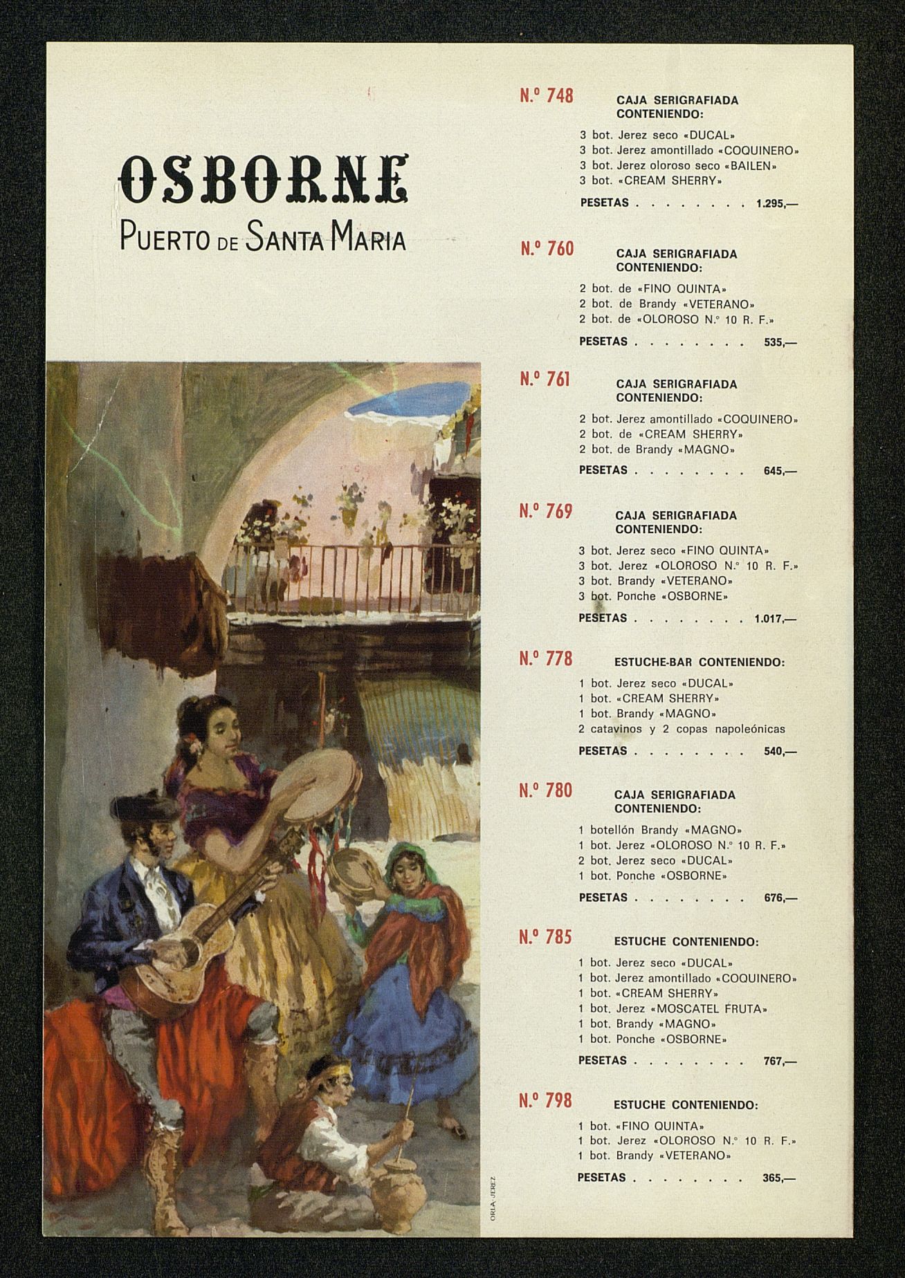 Osborne. Números de surtidos y cajas serigrafiada con el contenido de cada uno y su precio en pesetas