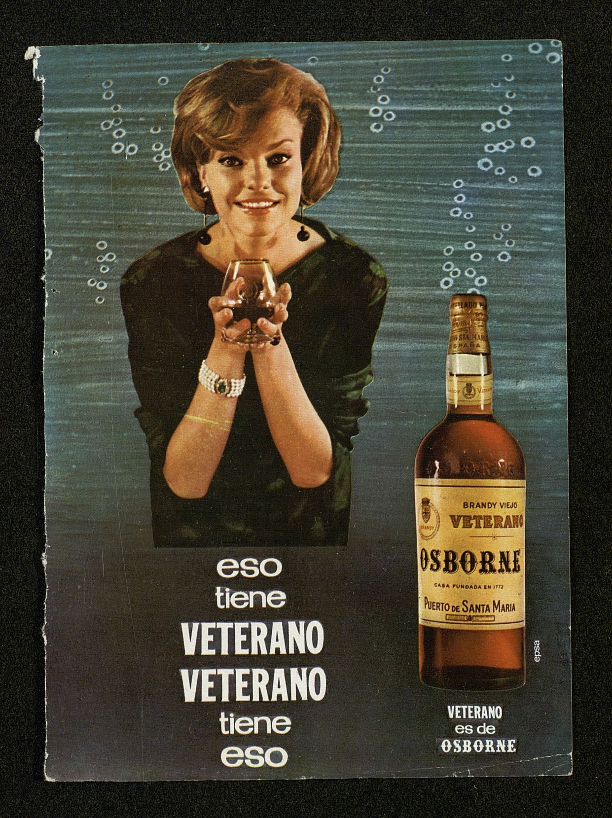 Eso tiene Veterano, Veterano tiene eso. Elena Balduque y botella de Veterano