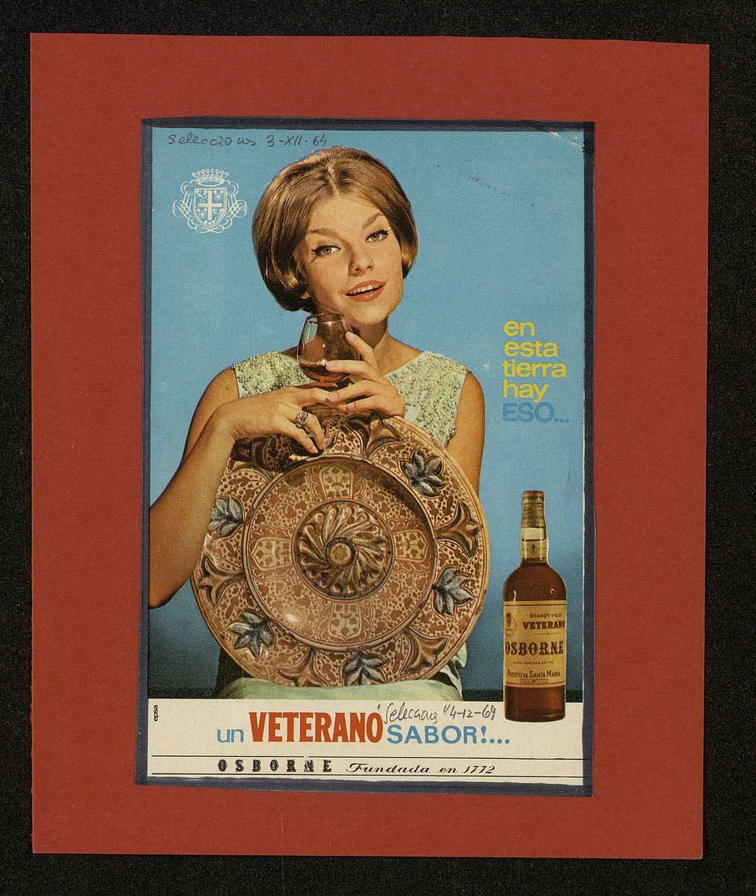 En esta tierra hay eso...un Veterano sabor. Elena Balduque con copa entre las manos y plato de cerámica