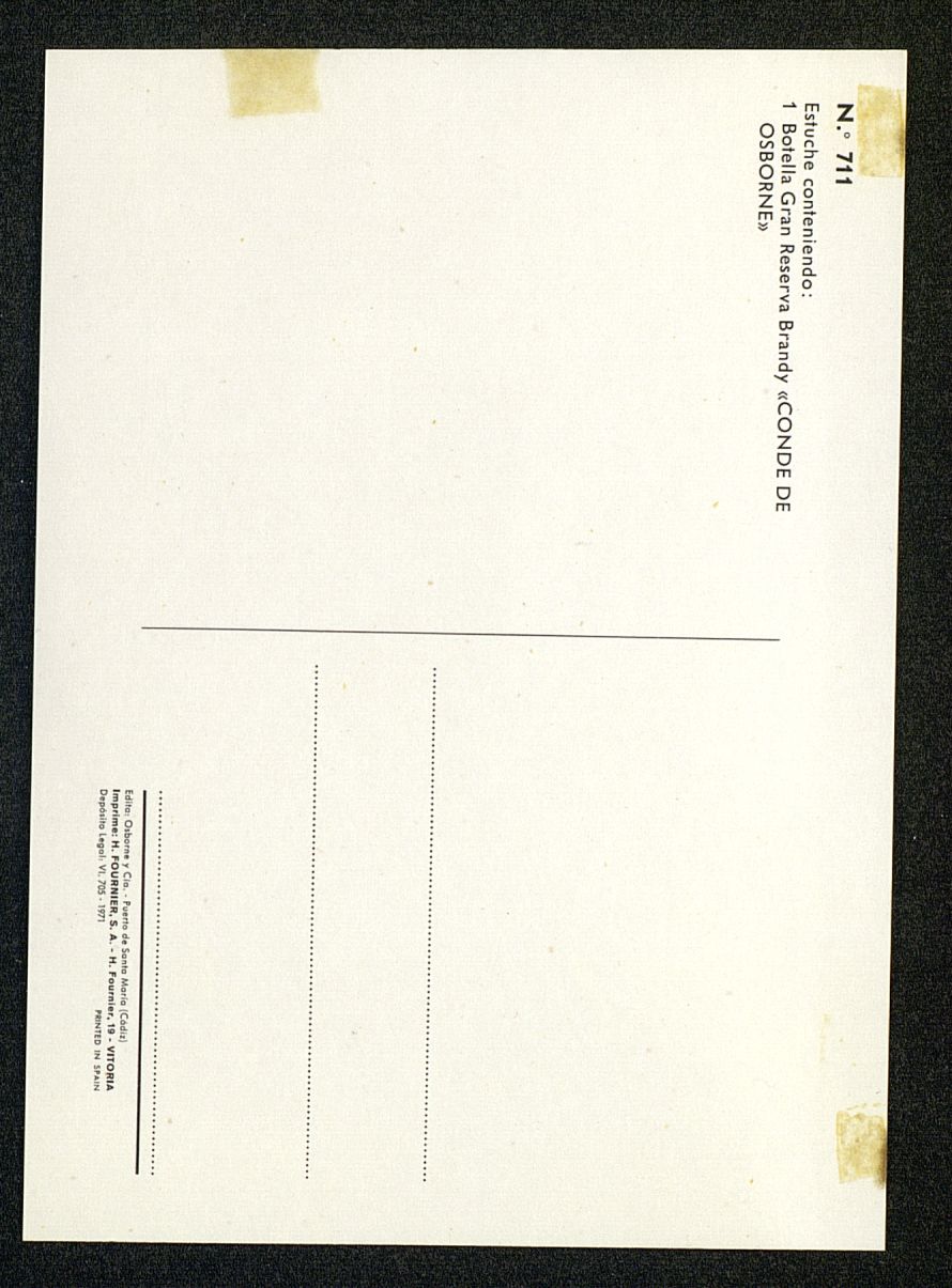 Estuche n 711 Contenido 1botella Gran Reserva Brandy Conde de Osborne Fotografía,Postal
