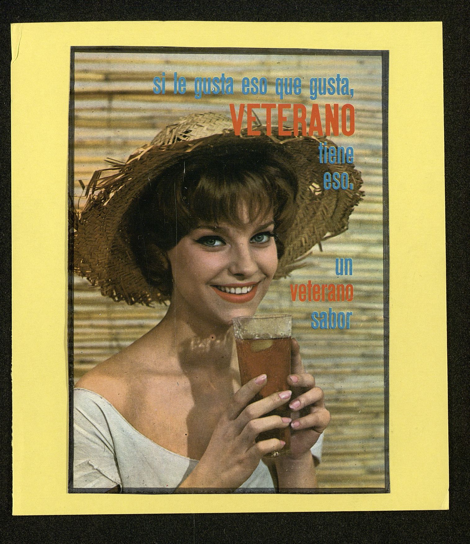 Si te gusta eso que gusta, Veterano tiene reso. Un Veterano sabor. Elena Balduque con sombrero y vaso entre las manos