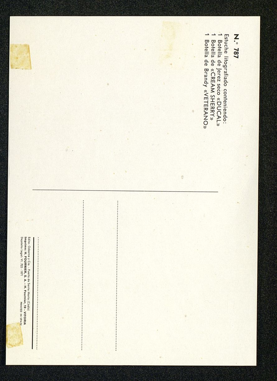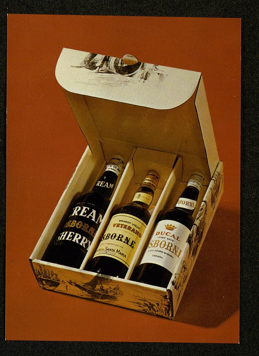Estuche litografiado n 787. Contiene1 botella de Jerez Seco Ducal, de Crem Sherry y Brandy Veterano Fotografía,Postal