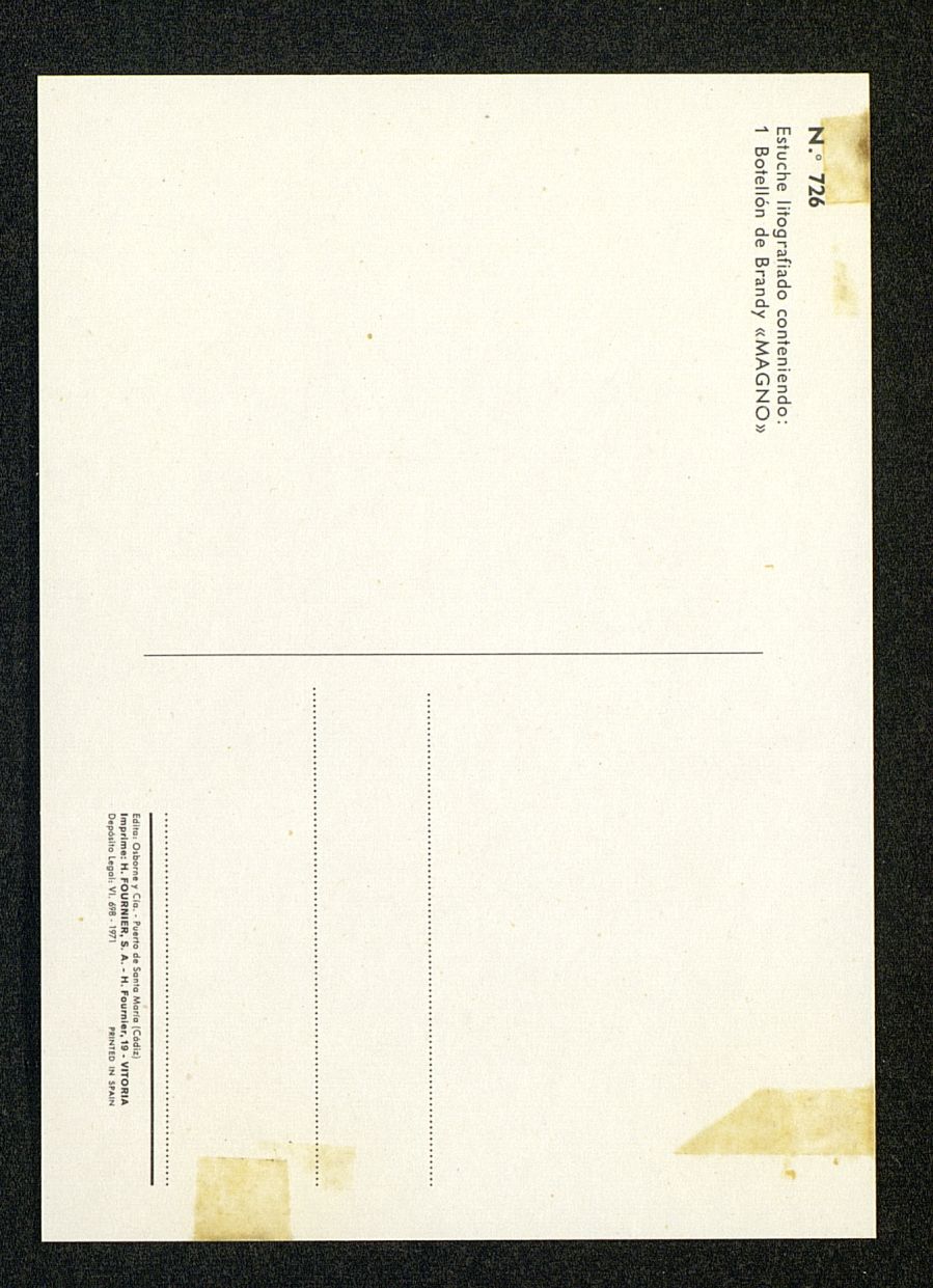 Estuche litografiado n 726 conteniendo 1Botellón de Brandy Magno Fotografía,Postal