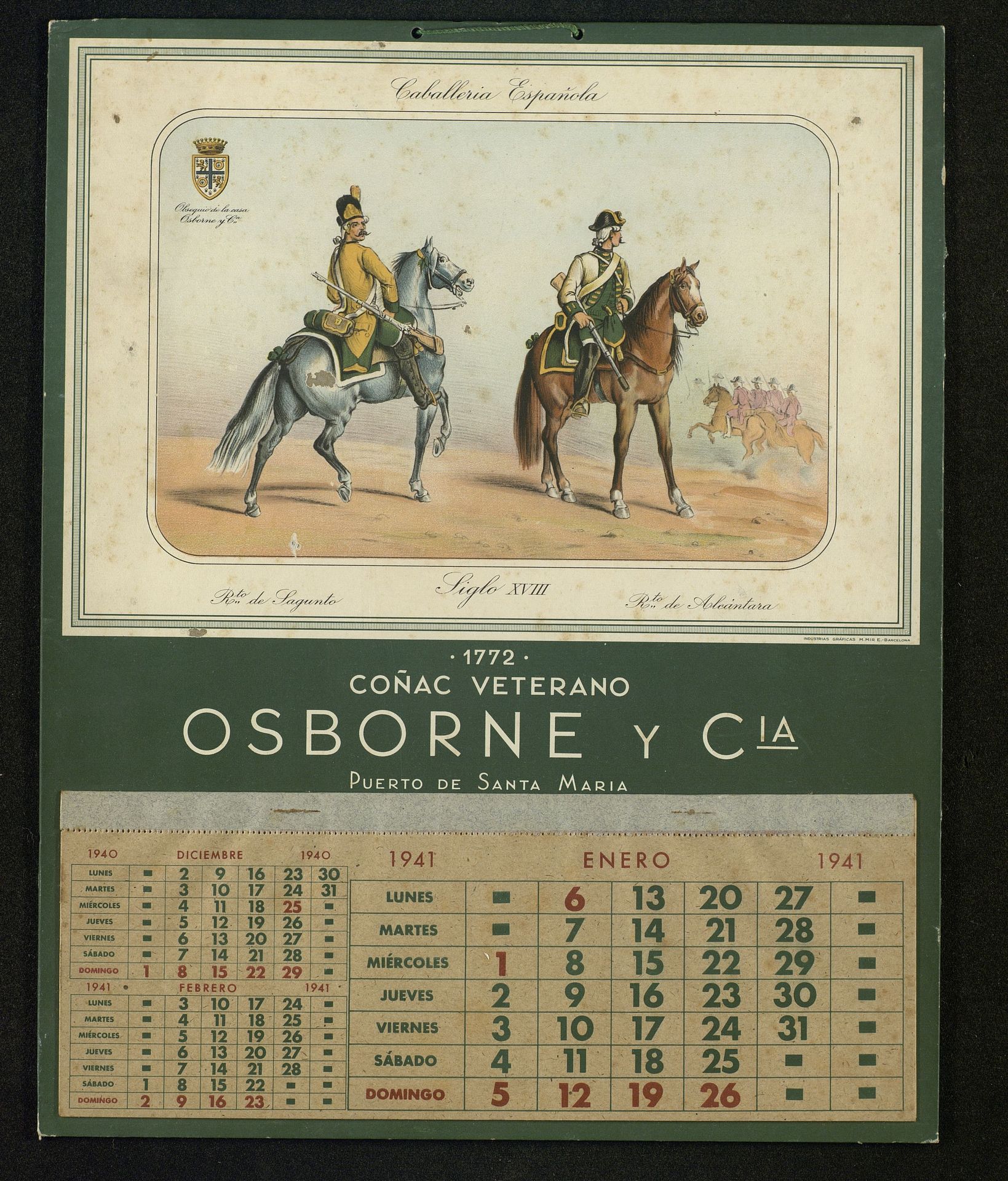 Caballeria Española. Coñac Veterano, Osborne y Cia. Calendario año 1941